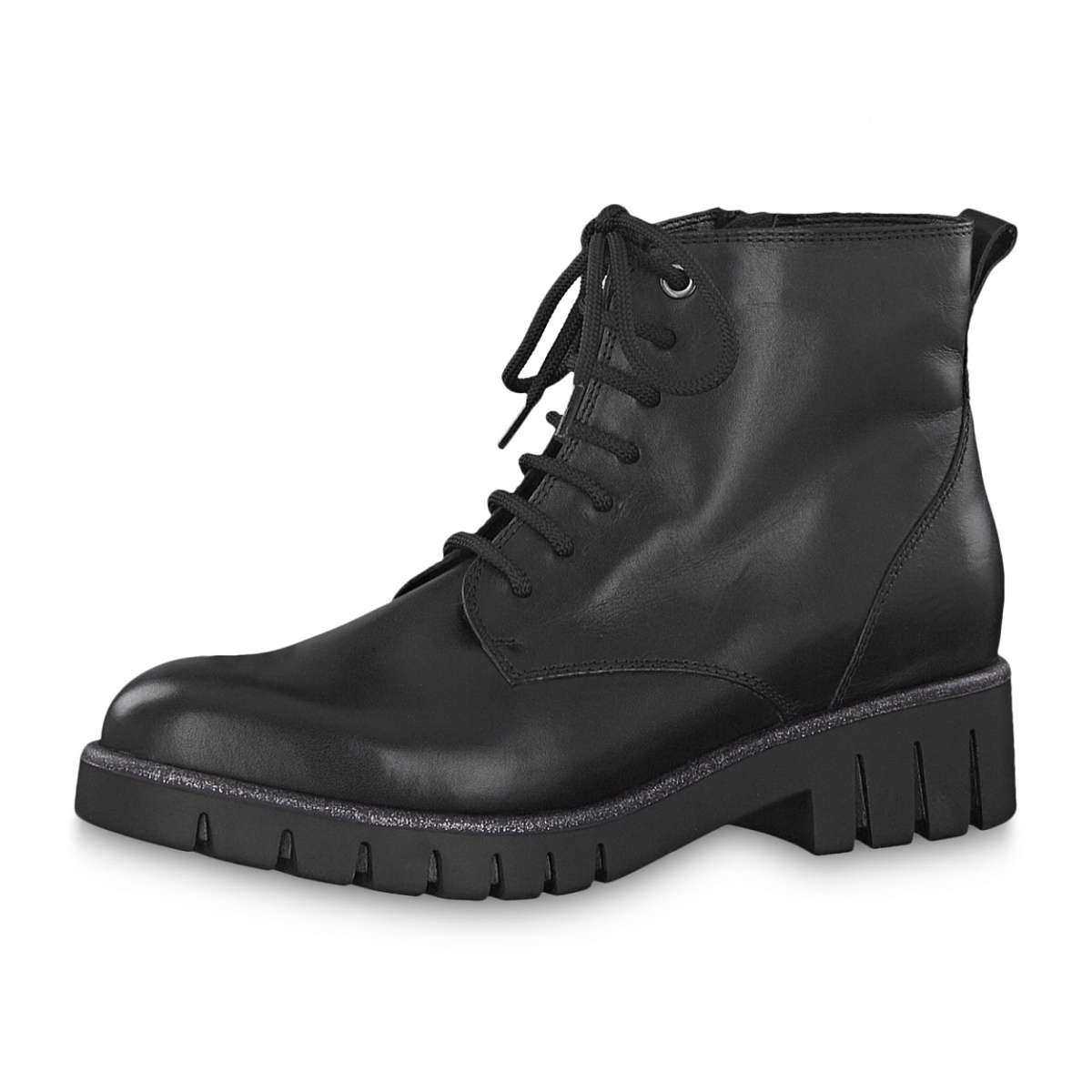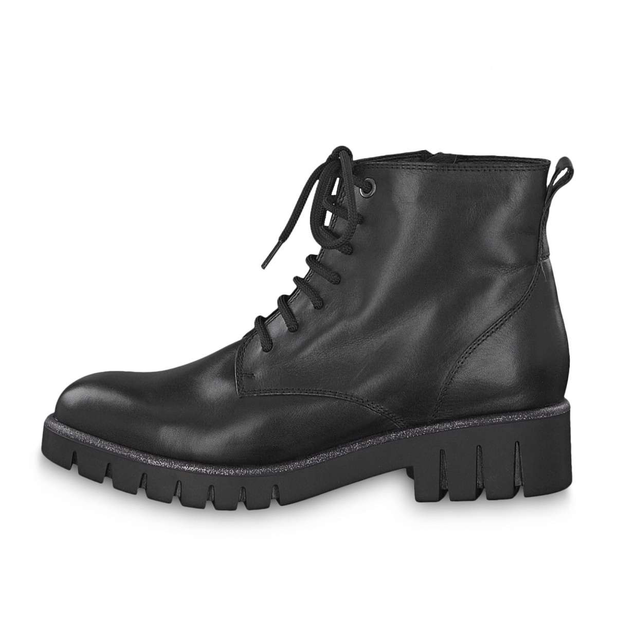 Tato kotníková obuv černé barvy od značky Tamaris je vyrobena z kvalitní pravé kůže, což Vás určitě potěší. Má hladký povrch a ozdobný lem podešve, který dodává botám ten správný šmrnc. Obouvání Vám usnadní jak funkční zip a poutko u horního okraje, tak i tkaničky na šněrování. Na zimní procházku lesem nebo městem jsou jako stvořené.