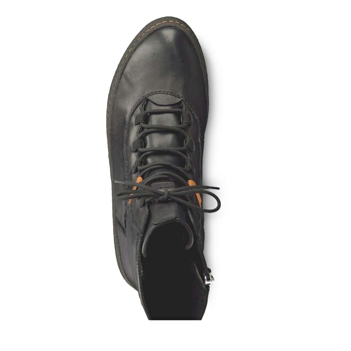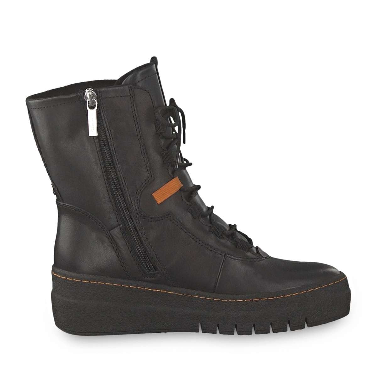 Stylová kotníková obuv na šněrování vyrobena z kombinace syntetiky a kůže v černé barvě, značky TAMARIS.