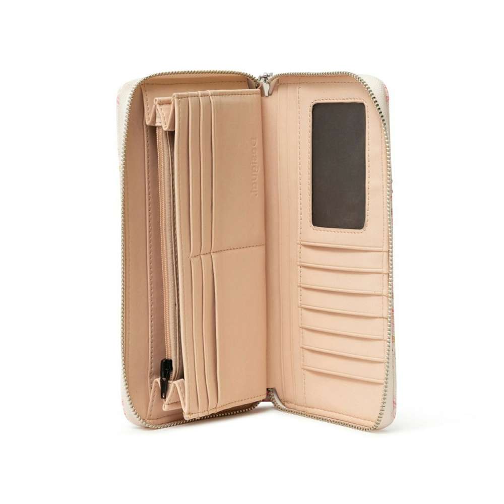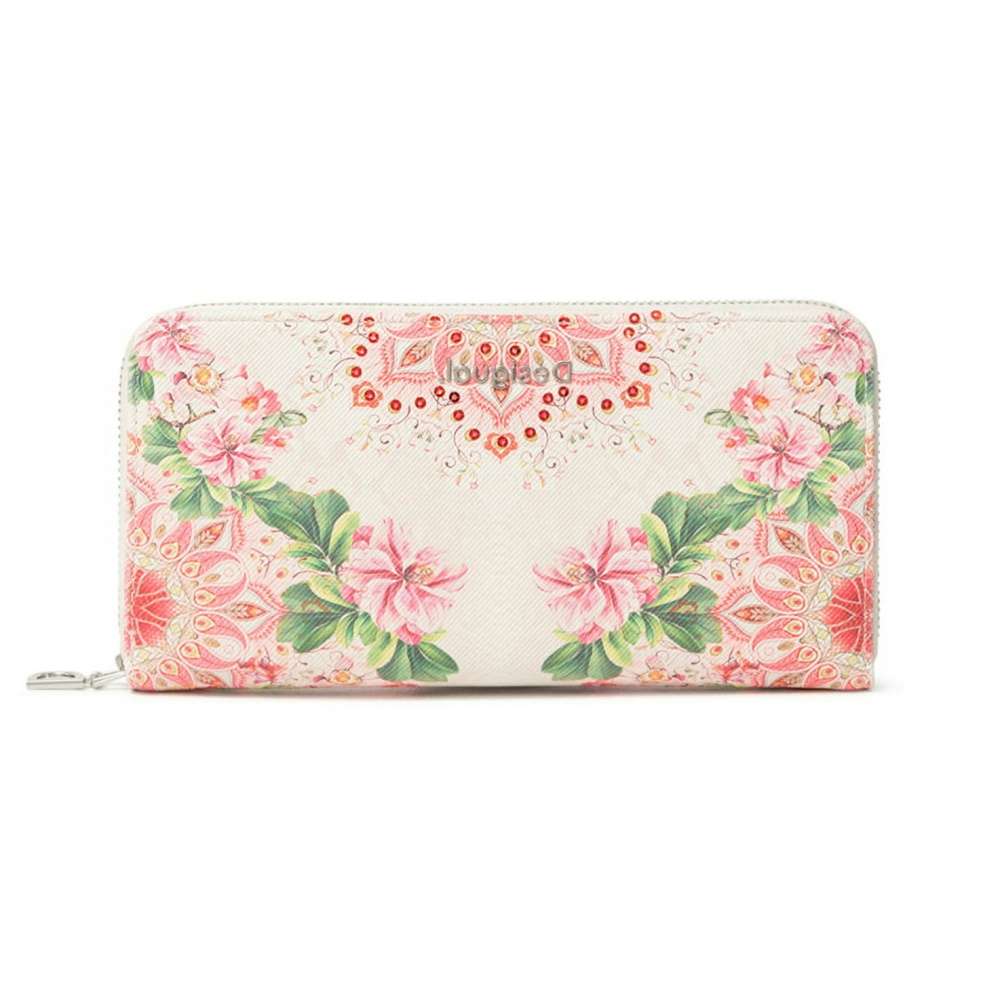 Dámská peněženka s jemným vzorem květin a decentním kovovým logem značky Desigual na přední straně. Svršek je vyroben z kvalitního syntetického materiálu a ozvláštněn barevnými detaily.