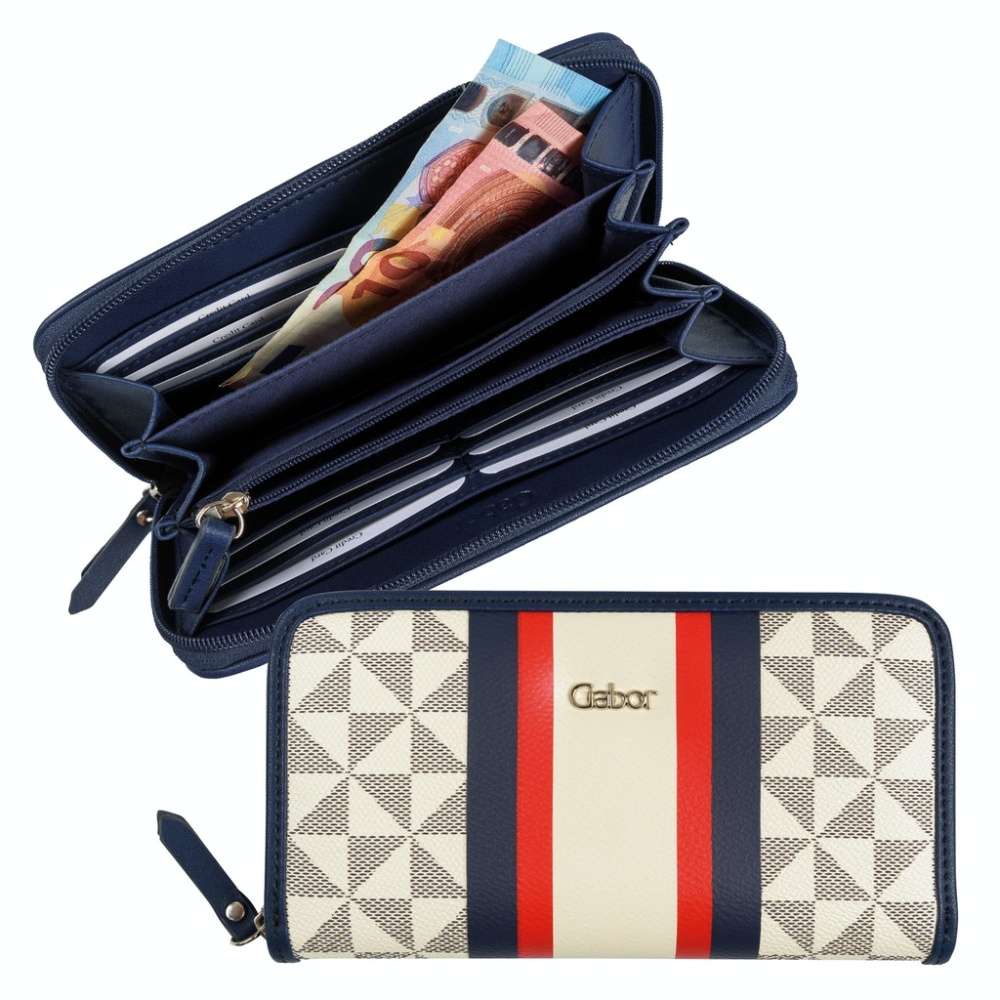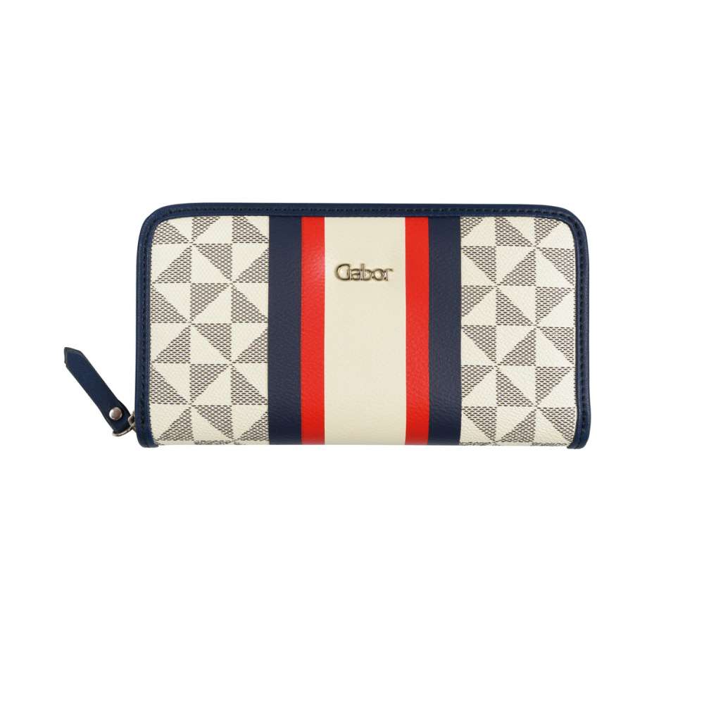 Vzorovaná peněženka s barevnými pruhy uprostřed zaujme každou z Vás, díky tmavě modrému lemu a decentnímu logu značky Gabor. Svršek je vyroben z kvalitního syntetického materiálu a ozvláštněn barevnými detaily.