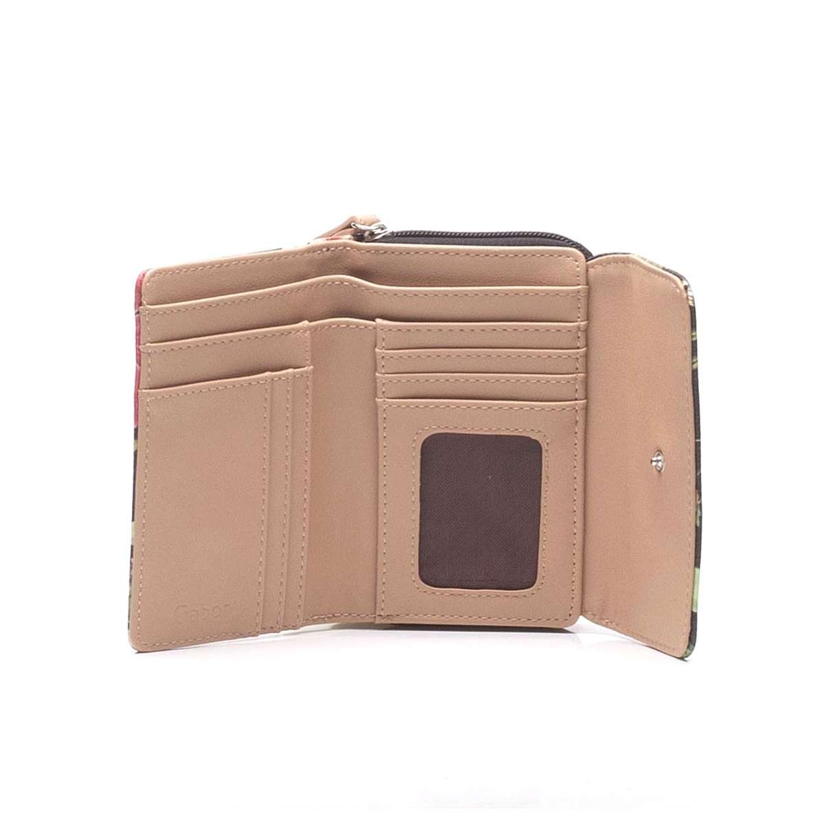 Nadčasový model se vzorem květů je přesně tím pravým, co vystihuje tuto nádhernou GABOR peněženku. Svrchní materiál je pestrobarevný a je jemně prošit, kde doplňujícím prvkem je malé logo značky GABOR. K zapínání slouží cvoček, kdy po jeho rozepnutí uvnitř najdeme praktické kapsičky na karty a v zadní části má zip na drobáky. Tato peněženka bude skvělým doplňkem ke kabelce GABOR v naší kolekci.
