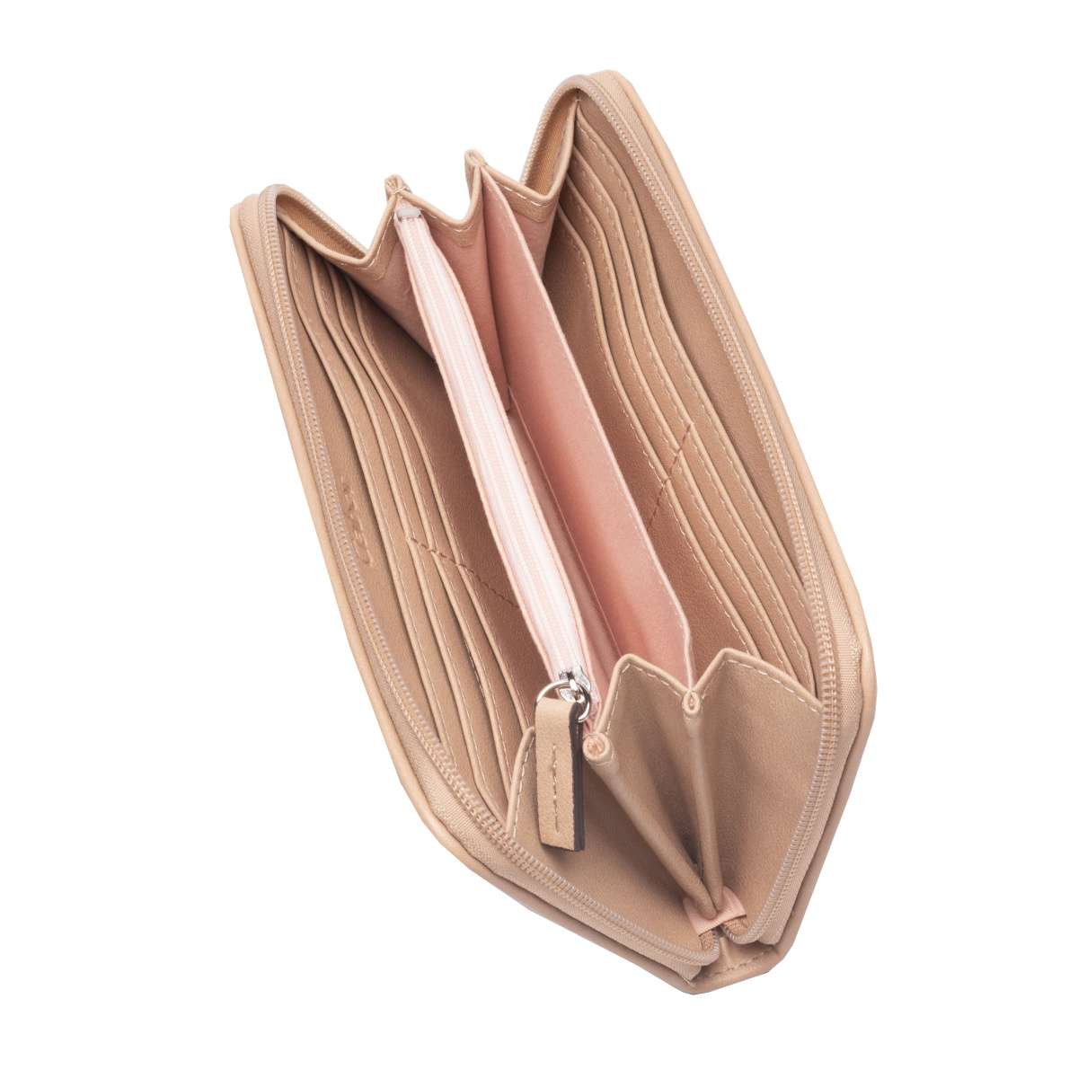Designově zajímavý model se symetrickými tvary na svršku, je přesně tím pravým, co vystihuje tuto nádhernou GABOR peněženku. Svrchní materiál je jednoduchý, je jemně prošit v olemování po okrajích a doplňujícím prvkem je malé logo značky GABOR. K zapínání slouží zip, kdy po jeho rozepnutí uvnitř najdeme praktické kapsičky na karty a uprostřed zip na drobáky. Tato peněženka bude skvělým doplňkem ke kabelce GABOR v naší kolekci.