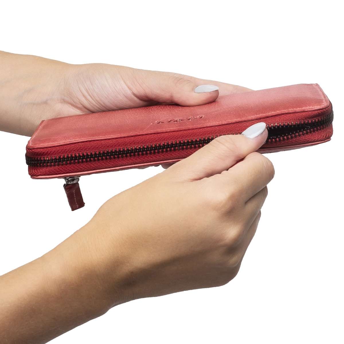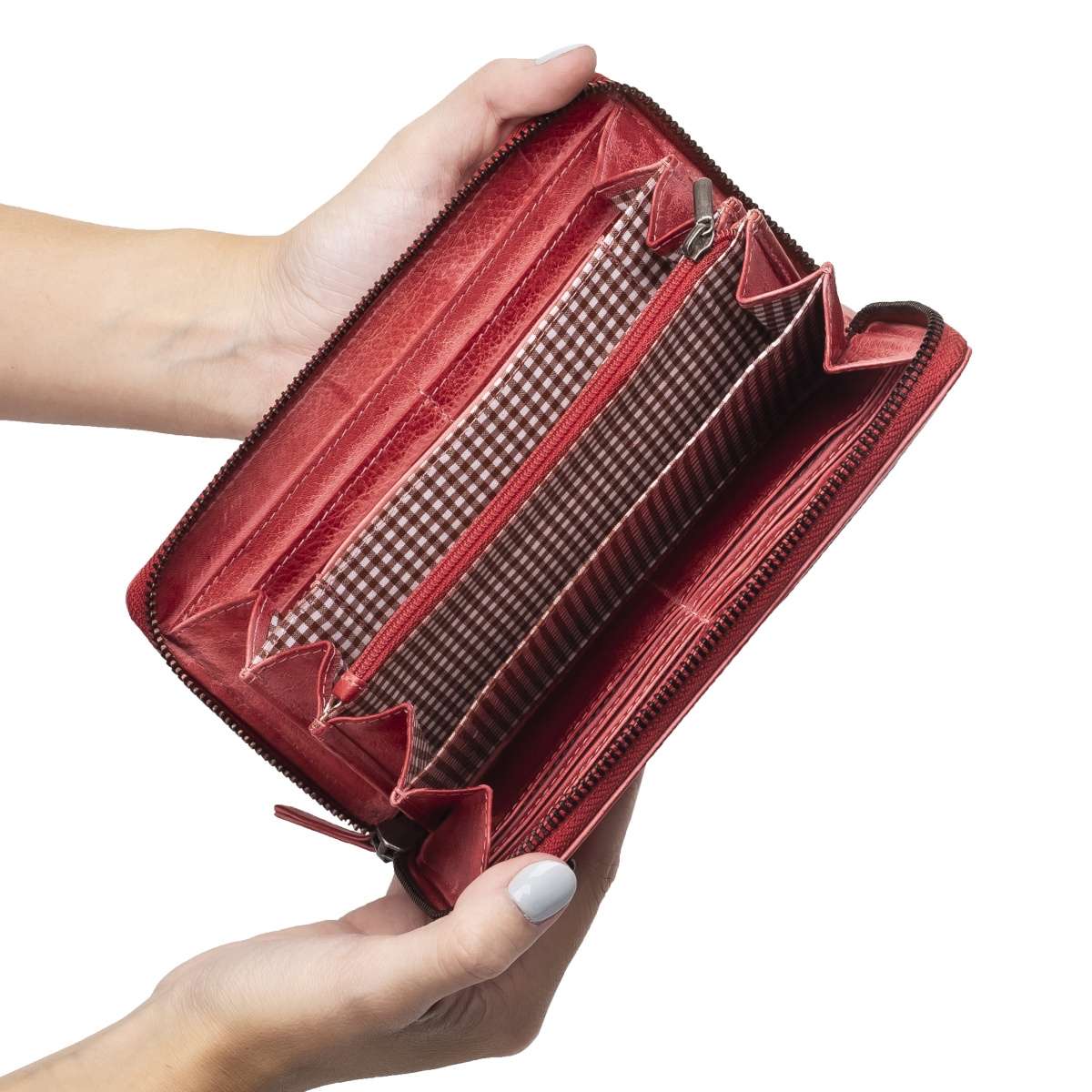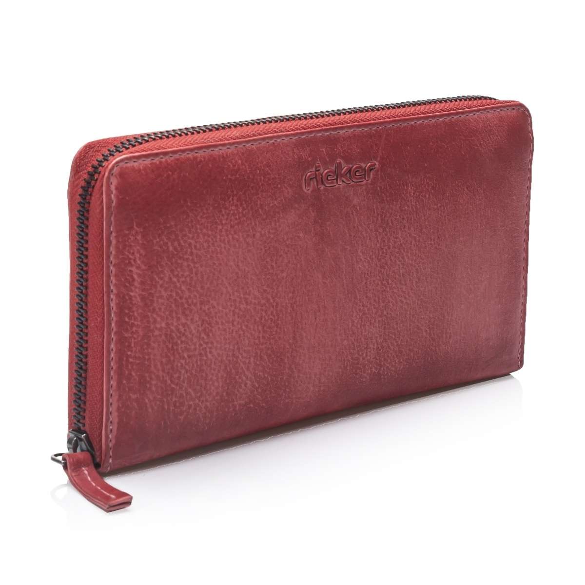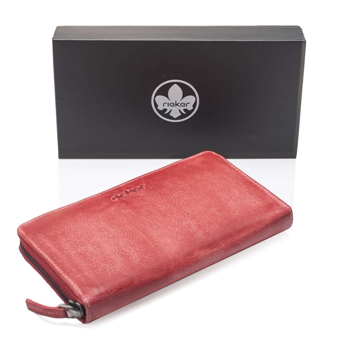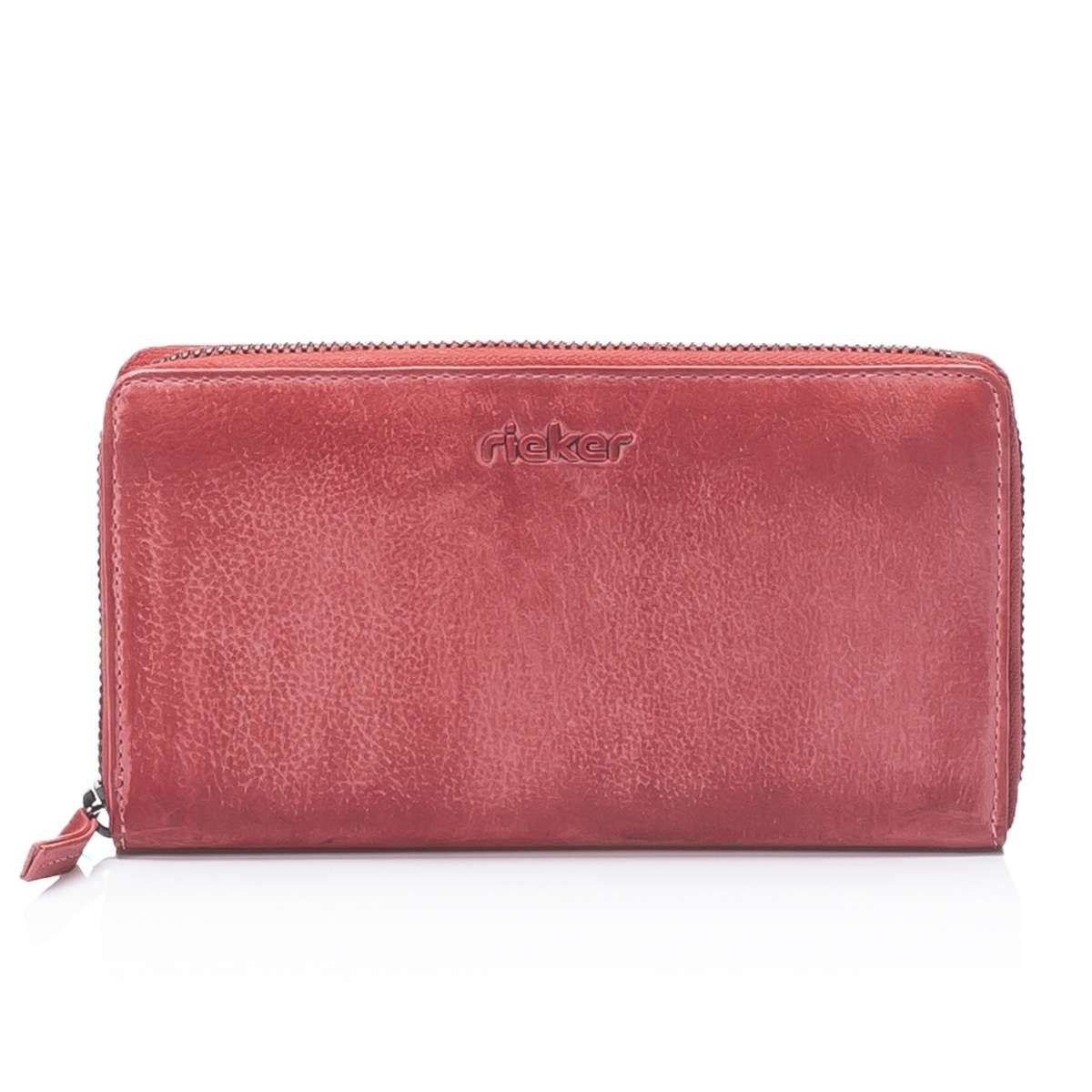 Tato originální dámská peněženka značky RIEKER bude pro Vás dokonalým doplňkem. Svršek peněženky vyrobený z kvalitní hovězí kůže je na přední straně ozdoben jemně vytlačeným názvem značky. K zapínání slouží funkční zip, kdy po jeho rozepnutí uvnitř najdeme praktické kapsičky na karty, papírové peníze a kapsičku uzavíratelnou zipem, vhodnou třeba na drobné mince. Tato peněženka bude skvělým doplňkem nejen k obuvi, ale i ke kabelkám z naší nabídky.