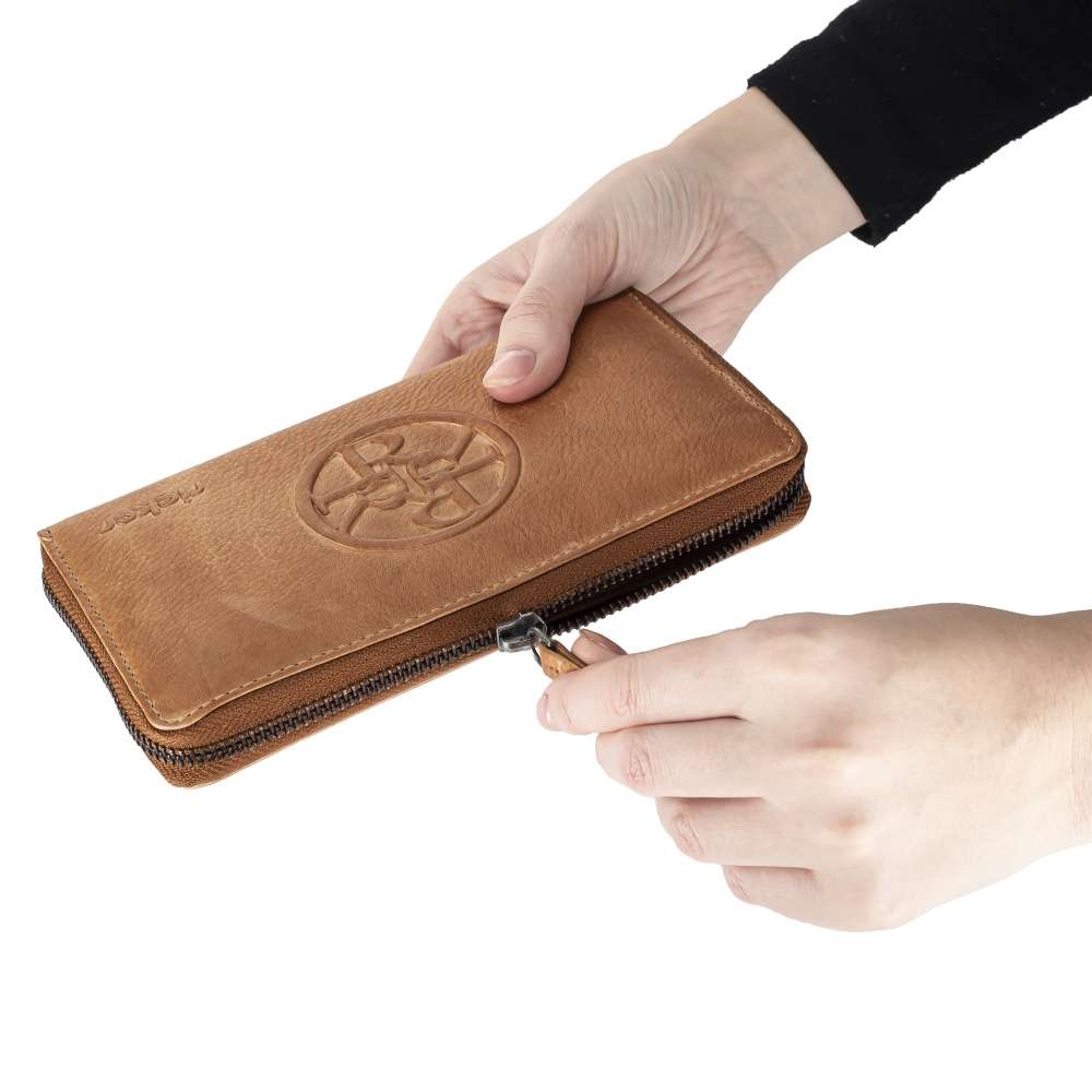 Luxusní model peněženky Vás jednoznačně nadchne svým vtlačeným logem značky RIEKER a kapsou na zadní straně. Svrchní materiál je vyroben z pravé přírodní usně a dozdoben decentním prošitím kolem okrajů. K zapínání slouží funkční zip, kdy po jeho rozepnutí uvnitř najdeme praktické kapsičky na karty, papírové peníze a kapsičku uzavíratelnou zipem, vhodnou například na drobné mince. Tato peněženka bude skvělým doplňkem nejen k obuvi, ale i ke kabelkám z naší široké nabídky. Krásný dámský doplněk, který si jednoduše zamilujete. Rozměry: cca v 11 cm x š 19 cm x h 3 cm