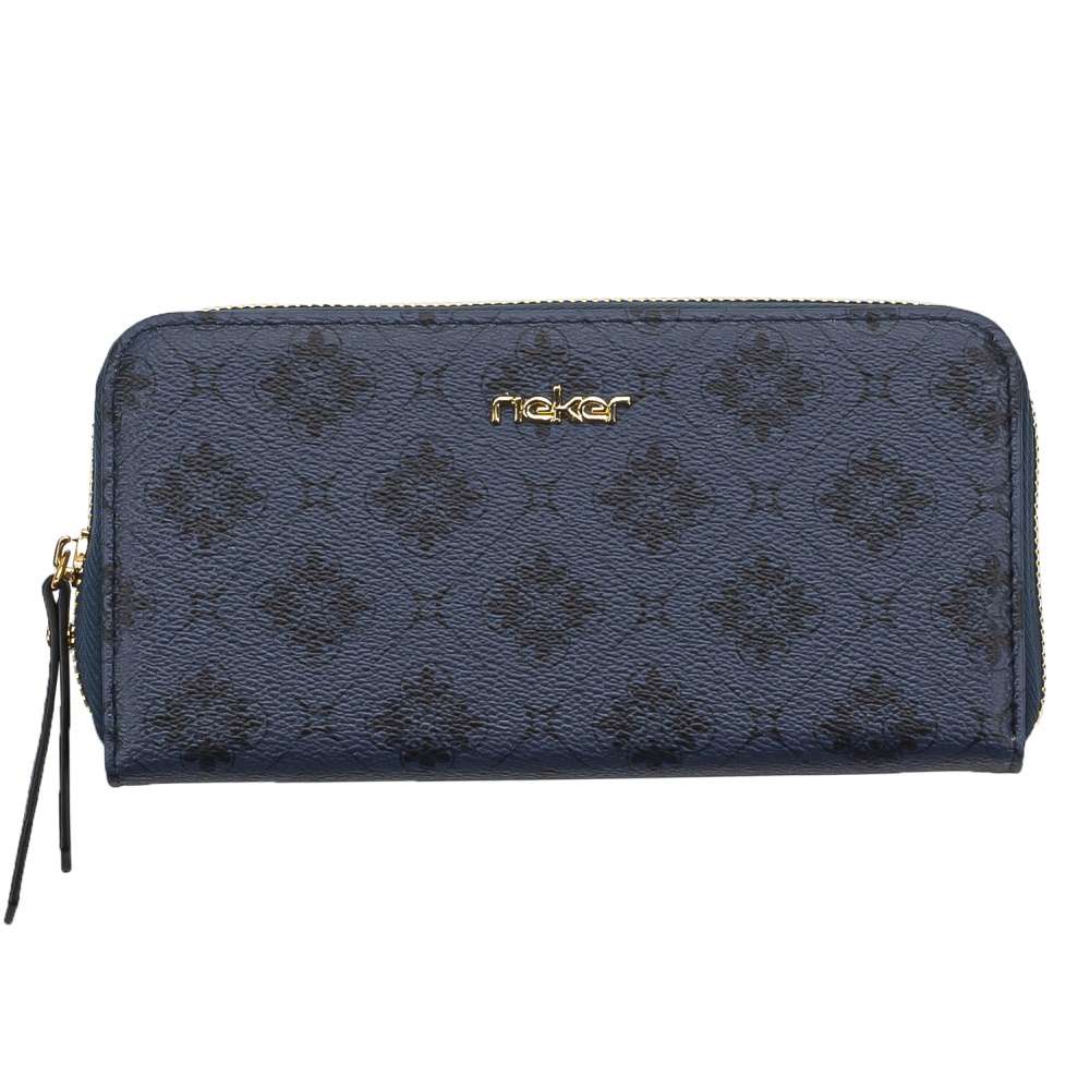 Dopřejte si tuto dámskou peněženku značky RIEKER, která vyniká svým originálním vzorem. Svrchní materiál z jemně hrubšího materiálu v tmavě modré barvě je dozdoben zlatavým nápisem. Peněženka má zip, kde po rozevření lze vidět několik kapes na karty, drobné mince nebo podélné přihrádky na bankovky. Velmi příjemný a praktický kus, který určitě každá žena ocení. Rozměry: cca v 10 cm x š 20 cm x h 3 cm