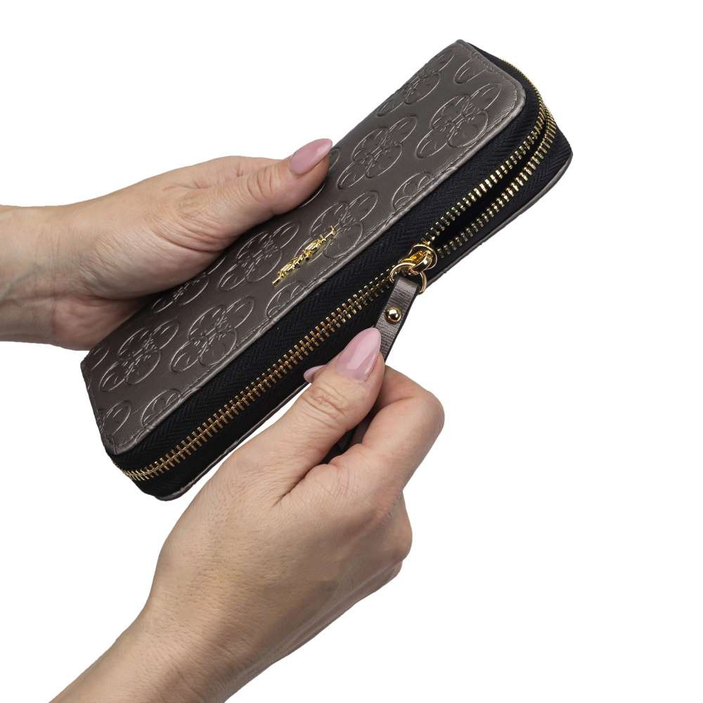 Detailní informace Tuto dámskou peněženku značky RIEKER si zamilujete už na první pohled. Svršek v metalické šedé barvě je obohacen vytlačeným vzorem, kde na přední straně vyniká zlatavý nápis. Peněženka má zip, kde po rozevření lze vidět několik kapes na karty, drobné mince nebo podélné přihrádky na bankovky. Tento krásný model se rozhodně stane Vašim oblíbeným doplňkem pro každodenní používání.