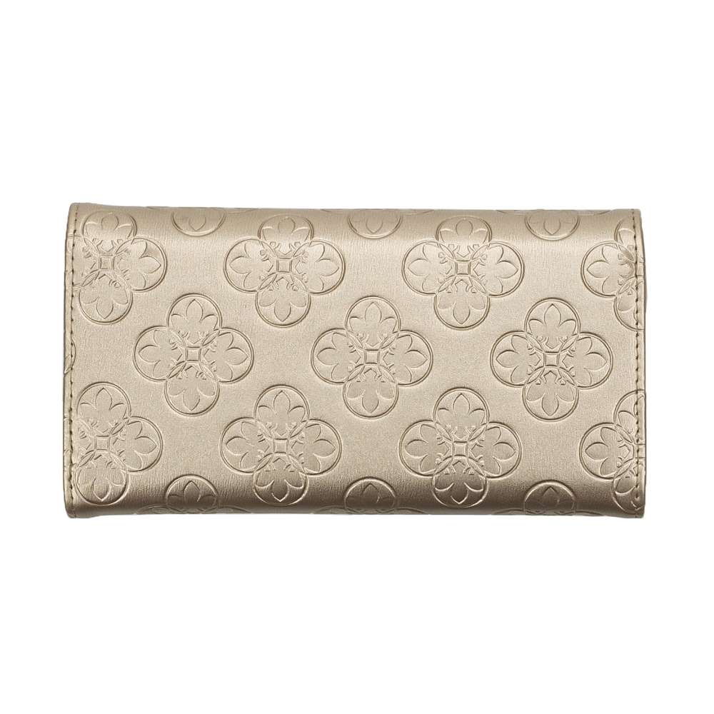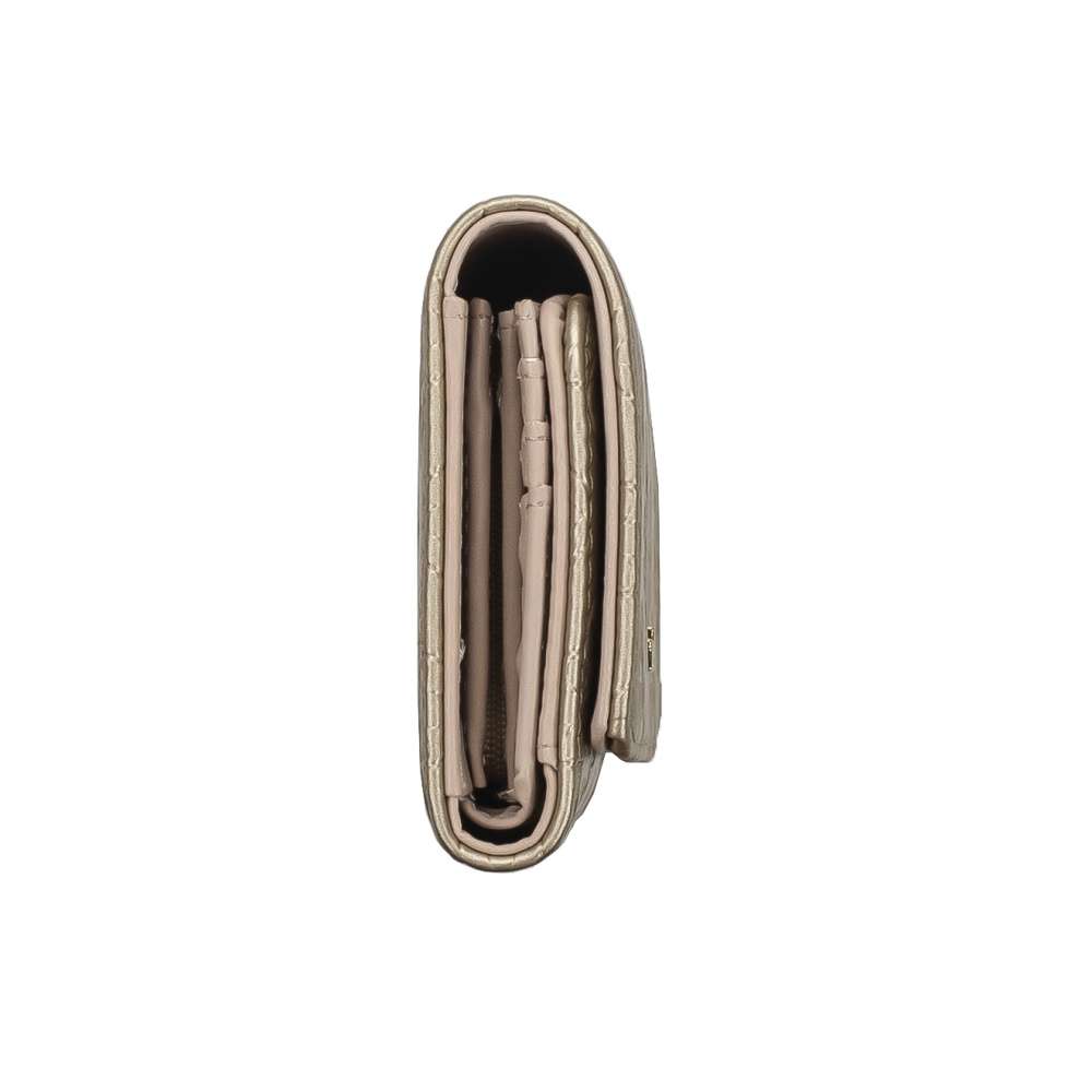 Tuto dámskou peněženku značky RIEKER si zamilujete už na první pohled. Svršek v metalické béžové barvě je obohacen vytlačeným vzorem, kde vyniká na přední straně zlatavý nápis. Peněženka má klopu na kovový cvoček, kde po rozevření lze vidět například několik dalších kapsiček na karty, drobné mince nebo podélné přihrádky na bankovky. Tento model bude Vaším společníkem při všech příležitostech. Rozměry: cca v 10 cm x š 19 cm x h 4 cm