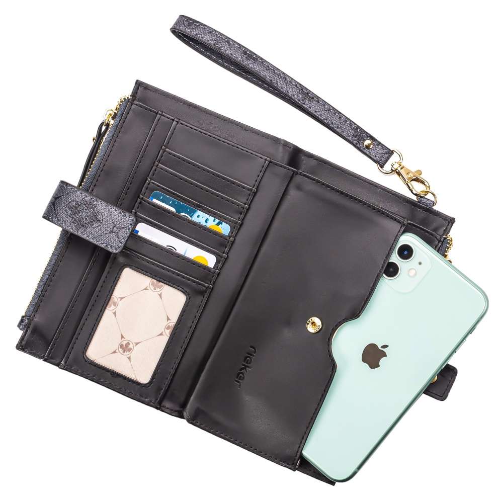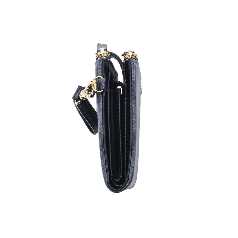 Tuto dámskou peněženku značky RIEKER si oblíbíte díky praktickému provedení. Svršek v tmavě šedé barvě je dozdoben stylovým vzorem, zlatavým nápisem a odepínatelným poutkem. Peněženka má dvě kapsy zapínatelné zipem a celkově se uzavírá páskem s drukem. Po rozevření peněženky lze vidět několik dalších kapsiček na karty, mobilní telefon nebo podélné přihrádky na bankovky. Tento krásný model se rozhodně stane Vašim oblíbeným doplňkem pro každodenní používání. Rozměry: cca v 12 cm x š 18,5 cm x h 3 cm