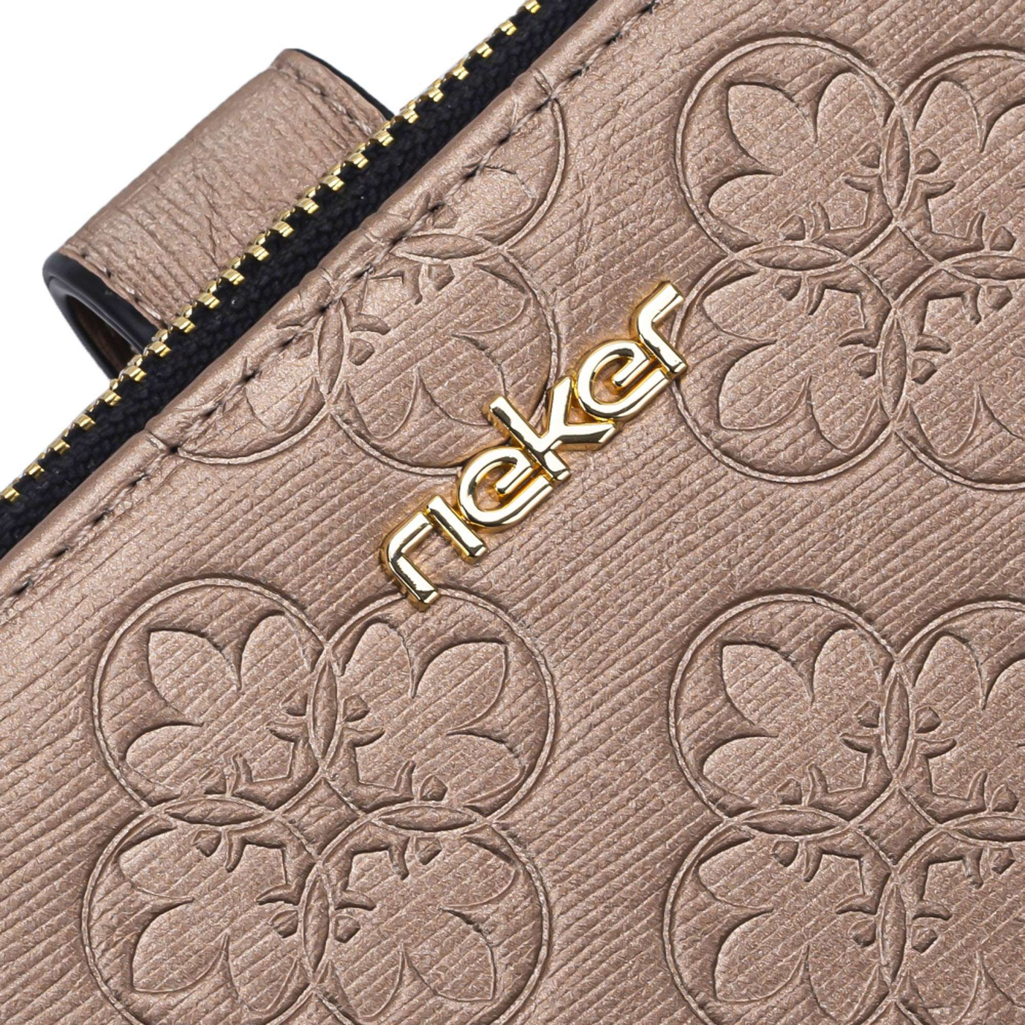 Detailní informace Tato dámská peněženka značky RIEKER Vás okouzlí svým stylovým provedením. Svršek v metalické béžové barvě je dozdoben vytlačeným vzorem, zlatavým nápisem a odepínatelným poutkem. Peněženka má dvě kapsy zapínatelné zipem a celkově se uzavírá páskem s drukem. Po rozevření peněženky lze vidět několik dalších kapsiček na karty, mobilní telefon nebo podélné přihrádky na bankovky. Tato peněženka Vám bude věrným společníkem každý den.