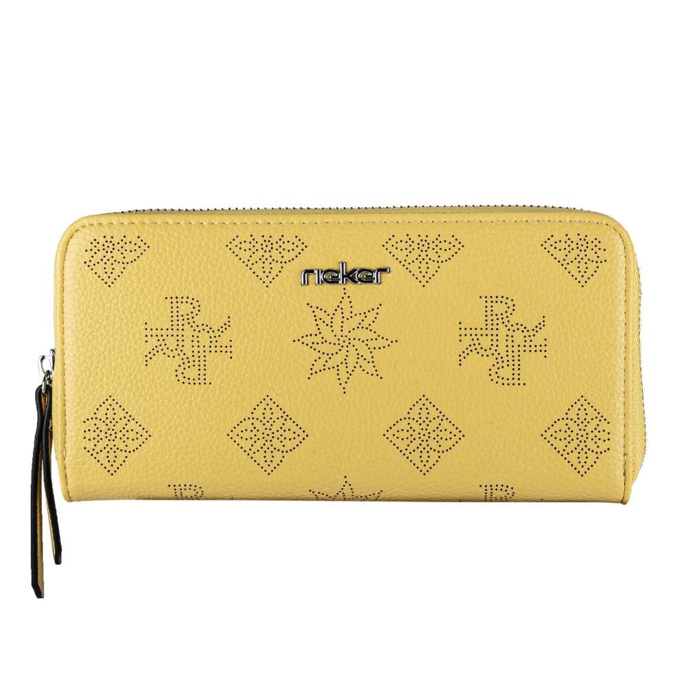 Tento nadčasový model peněženky Rieker Vás jednoznačně zaujme vzory, které jsou perforací vyražené do povrchu a logem značky Rieker na přední straně. K zapínání slouží funkční zip, kdy po jeho rozepnutí uvnitř najdeme praktické kapsičky na karty, papírové peníze a kapsičku uzavíratelnou zipem, vhodnou například na drobné mince. Tato peněženka bude skvělým doplňkem nejen k obuvi, ale i ke kabelkám z naší široké nabídky. Krásný dámský doplněk, který si jednoduše zamilujete. Rozměry: cca v 10 cm x š 20 cm x h 3 cm