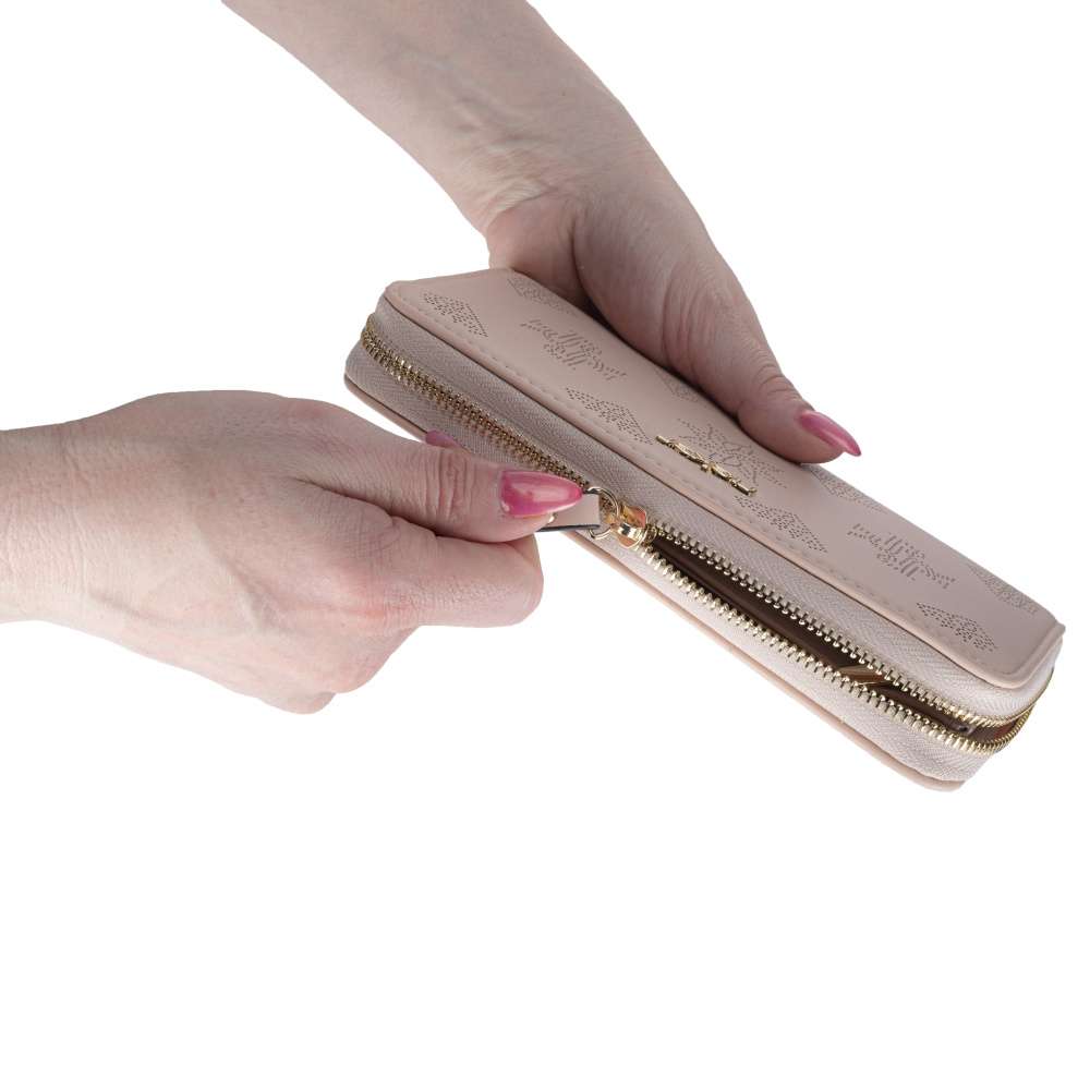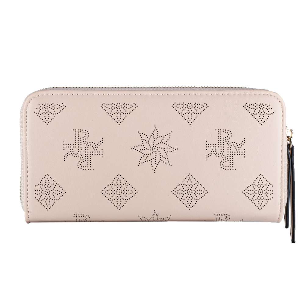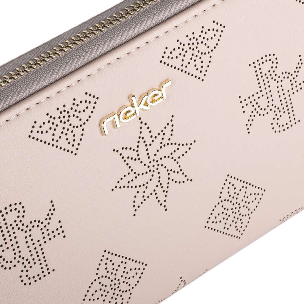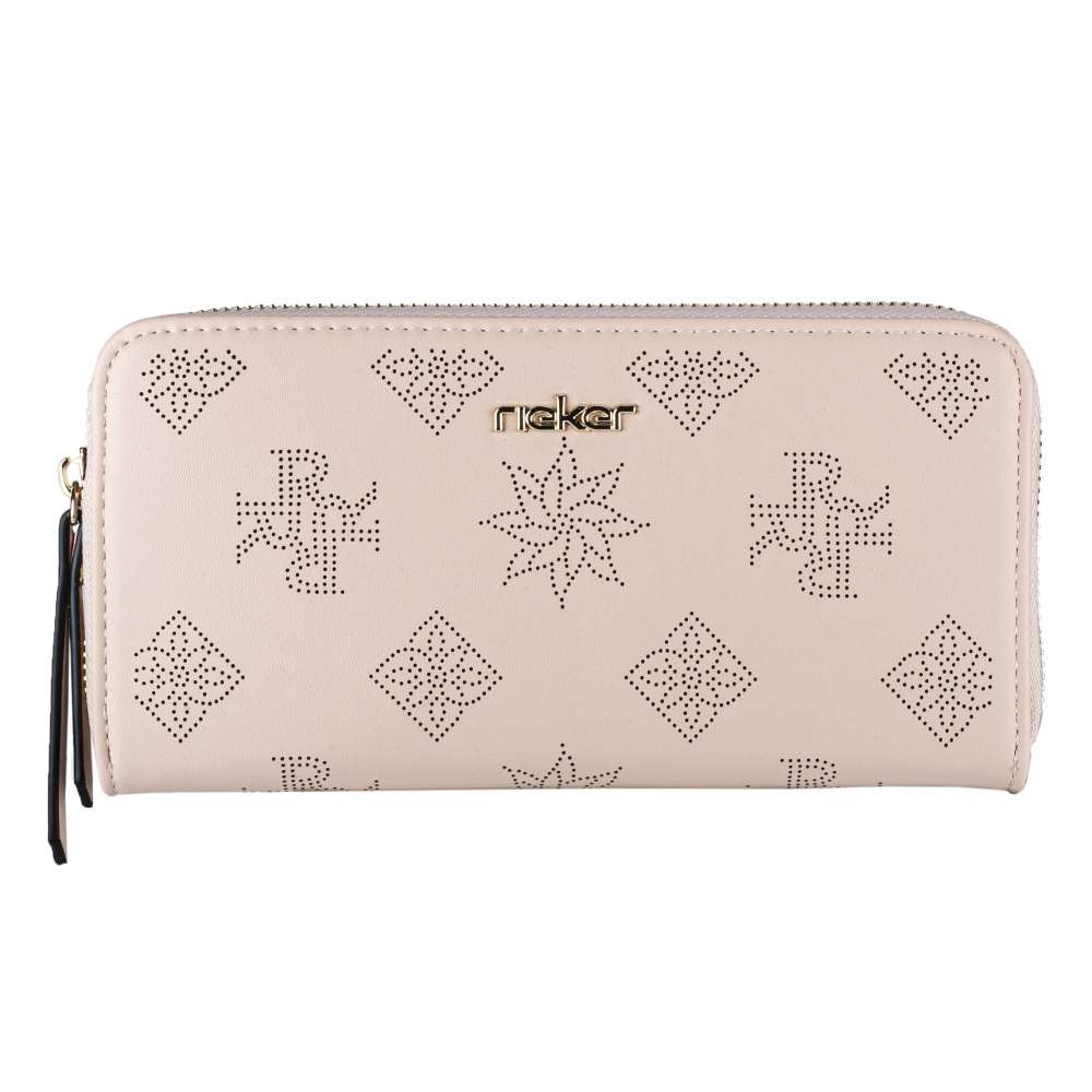 Tento nadčasový model peněženky Rieker Vás jednoznačně zaujme vzory, které jsou perforací vyražené do povrchu a logem značky Rieker na přední straně. K zapínání slouží funkční zip, kdy po jeho rozepnutí uvnitř najdeme praktické kapsičky na karty, papírové peníze a kapsičku uzavíratelnou zipem, vhodnou například na drobné mince. Tato peněženka bude skvělým doplňkem nejen k obuvi, ale i ke kabelkám z naší široké nabídky. Krásný dámský doplněk, který si jednoduše zamilujete. Rozměry: cca v 10 cm x š 20 cm x h 3 cm