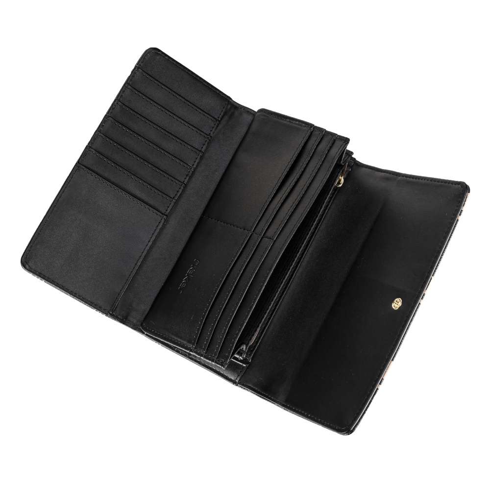 Větší dámská peněženka značky RIEKER, která si najde svoje příznivce. Praktický svršek je doplněný ozdoby připomínající květiny, a spolu s logem značky vytváří designovou kombinaci. Po otevření hlavní kapsy na magnetický klip máte po ruce všechno, co potřebujete. Z jedné strany je mnoho prostoru na karty a vizitky, následuje velká kapsa na bankovky a kapsa na zip, kde si můžete uložit mince. Poslední kapsička též může posloužit na bankovky, nebo jiné drobnosti. Se zakoupením tohoto modelu nebudete litovat. Rozměry: cca V 10 cm x Š 19 cm x H 3,5 cm