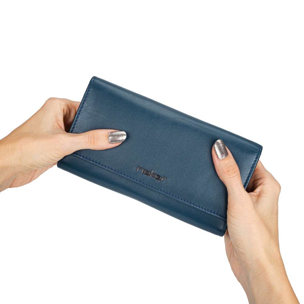 Oblíbený styl naší peněženky značky RIEKER přichází v novém provedení. Elegantní matný svršek je doplněný logem značky a má všitou kapsičku na zadní straně, kde si můžete uložit drobnosti, nebo i žetony na nákup. Hlavní kapsa je na magnetický klip, po jehož otevření se zde nachází mnoho úložného prostoru na karty, doklady i bankovky. Je zde zabudována i kapsička na zip, kde si můžete uložit kovové mince a jiné nezbytnosti. Tento líbivý kousek se stane Vaším novým doplňkem na každý den.
