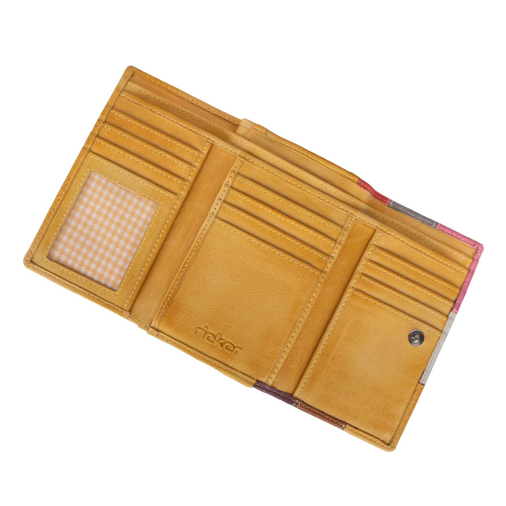 Dámská peněženka značky RIEKER, svým dokonale propracovaným a sladěným svrškem v kombinaci žluté barvy a vícebarevné skládačky, bude ideálním doplňkem každé z vás. Vrchní materiál je vyroben z pravé přírodní usně a dozdoben kontrastním prošitím. Peněženka je rozdělena na dvě části. Hlavní část uzavíratelná cvočkem má spoustu kapes na karty, tři postranní skryté kapsy a dvě podlouhlé na papírové peníze. Kapsa uzavíratelná zipem umístěná v zadní části peněženky je vhodná pro uložení mincí. S tímto luxusním doplňkem můžete udělat radost nejen sobě, ale také svým blízkým.
