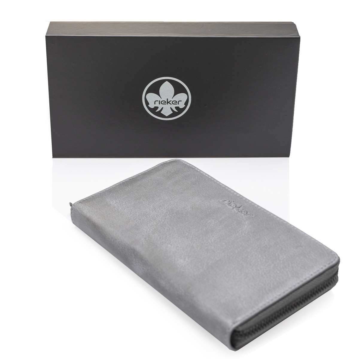 Tato originální dámská peněženka značky RIEKER bude pro Vás dokonalým doplňkem. Svršek peněženky vyrobený z kvalitní hovězí kůže je na přední straně ozdoben jemně vytlačeným názvem značky. K zapínání slouží funkční zip, kdy po jeho rozepnutí uvnitř najdeme praktické kapsičky na karty, papírové peníze a kapsičku uzavíratelnou zipem, vhodnou třeba na drobné mince. Tato peněženka bude skvělým doplňkem nejen k obuvi, ale i ke kabelkám z naší nabídky.