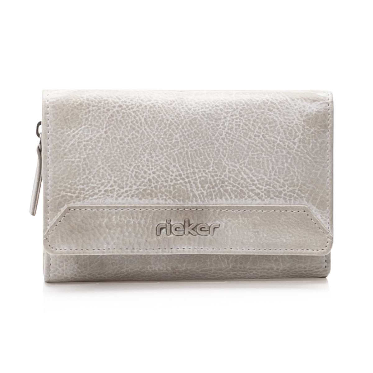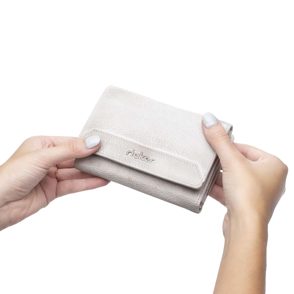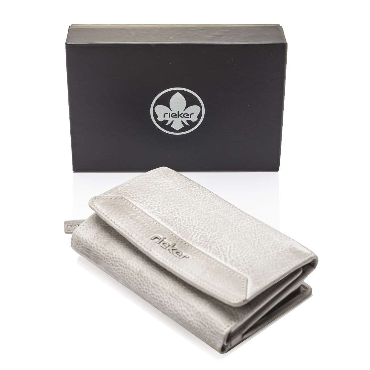 Tato jedinečná peněženka značky RIEKER bude pro Vás dokonalým doplňkem. Svršek peněženky vyrobený z kvalitní hovězí kůže je na přední straně ozdoben jemně vytlačeným názvem značky. Peněženka je rozdělena na dvě části. Část uzavíratelná cvočkem má jedenáct kapsiček na karty, kapsičku s folií na fotky, tři postranní skryté kapsy a dvě podlouhlé na papírové peníze. Kapsa uzavíratelná zipem je rozdělena na dvě části a vhodná třeba na drobné peníze. Tato peněženka bude skvělým doplňkem nejen k obuvi, ale i ke kabelkám z naší nabídky.