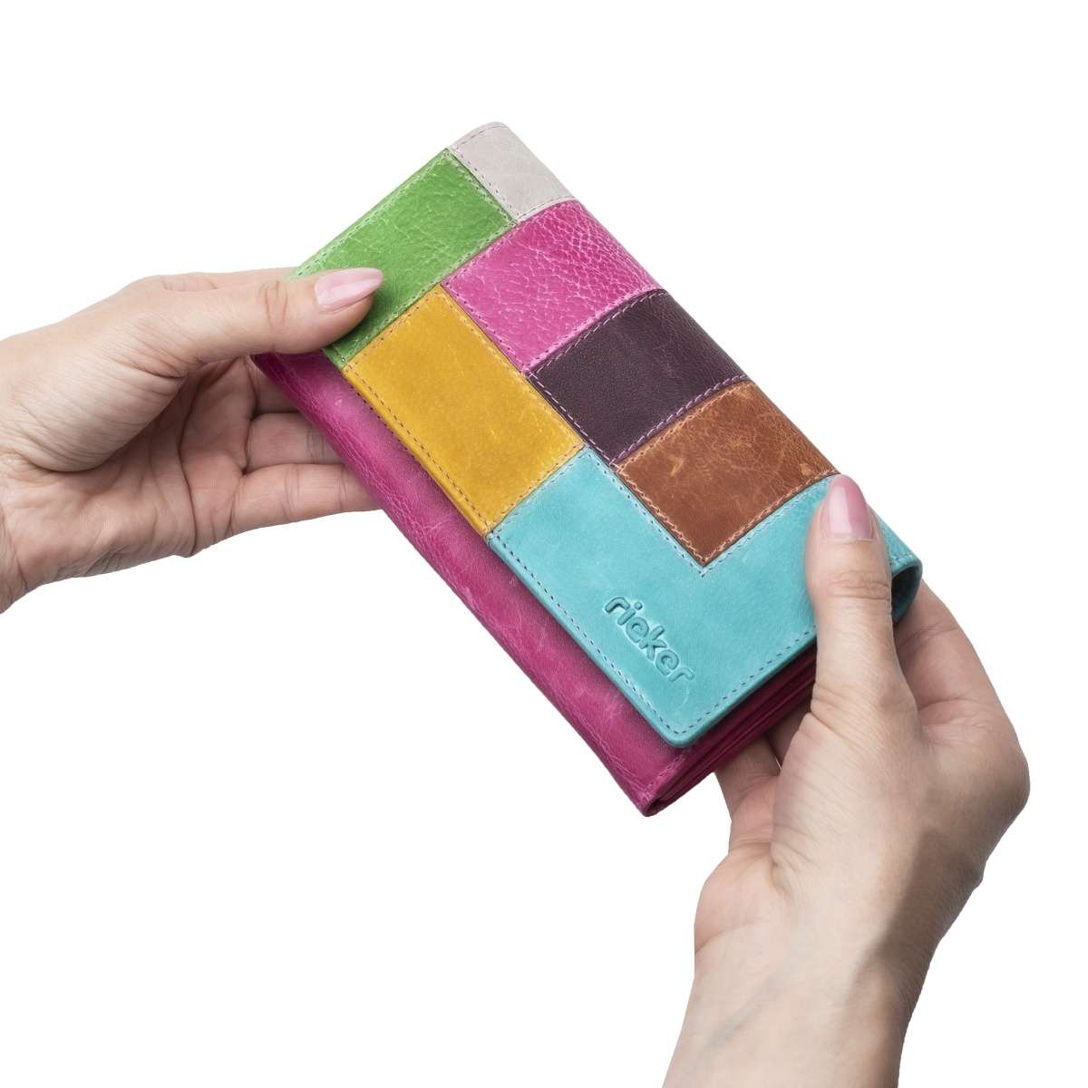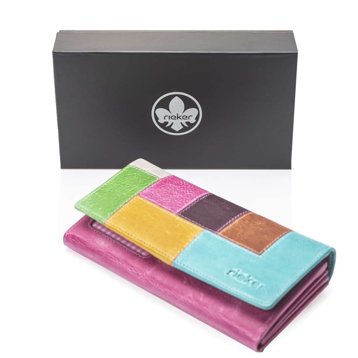 Nadčasový model s unikátním designem je přesně to, co vystihuje tuto nádhernou peněženku značky RIEKER. Svršek složený z různobarevných částí vyrobených z kvalitní kůže je na přední straně doplněn jemně vytlačeným názvem značky. K zapínání slouží cvoček, kdy po jeho rozepnutí uvnitř najdeme praktické kapsičky na karty, papírové peníze a kapsu uzavíratelnou zipem, vhodnou třeba na drobné mince. Tato peněženka bude skvělým doplňkem nejen k obuvi, ale i ke kabelkám z naší nabídky.