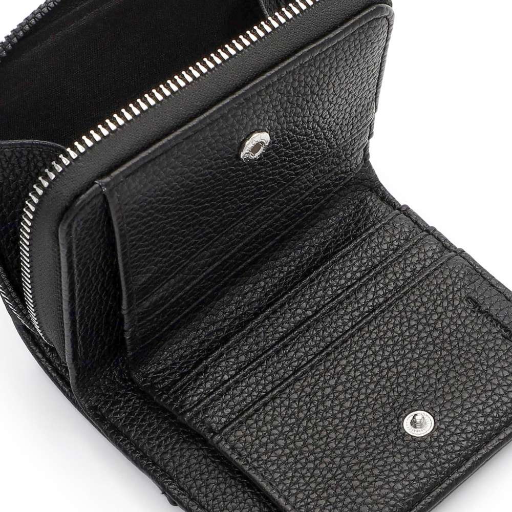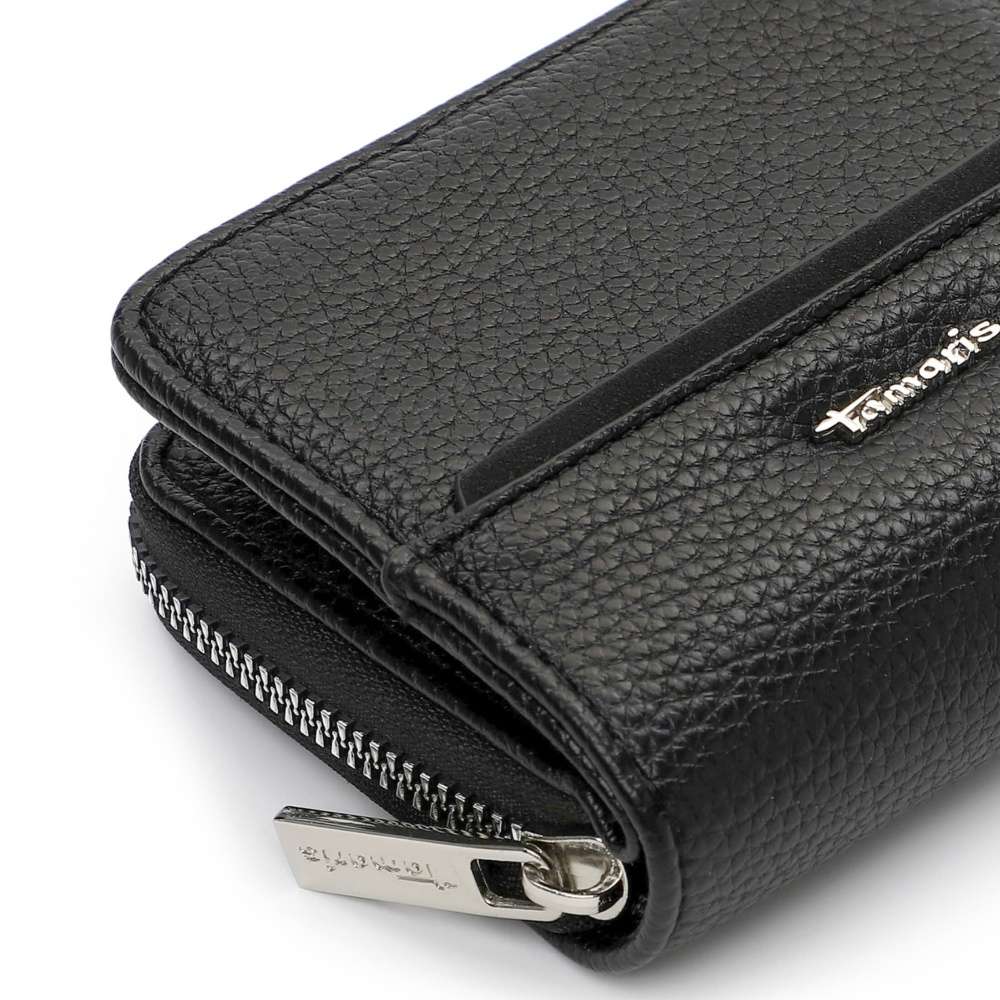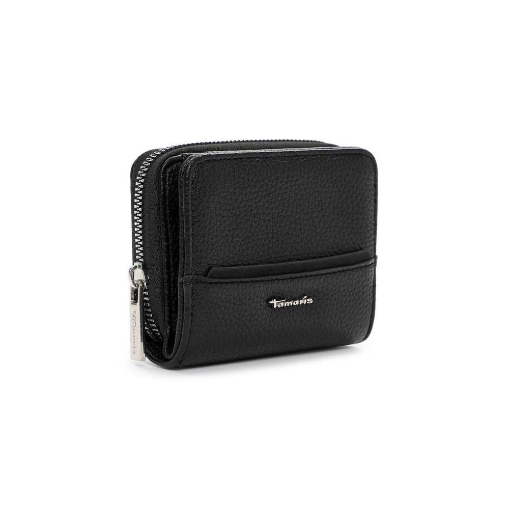 Nadčasová černá barva této peněženky TAMARIS propůjčuje doplňku univerzální eleganci, dekorativní logo značky ve stříbrném provedení podtrhuje její moderní styl. Praktické uzavírání na druk zajišťuje snadný přístup k přehledně řešenému vnitřnímu prostoru. Uvnitř naleznete dostatek přihrádek na platební karty, doklady i osobní dokumenty, stejně jako samostatný oddíl pro bankovky, který udrží vše přehledně uspořádané. O bezpečné uložení mincí se postará oddělená kapsa na zip, díky které budete mít drobné vždy pod kontrolou. Tato peněženka TAMARIS je ideální volbou pro ženy, které oceňují kvalitní zpracování, nadčasový design a praktické členění.