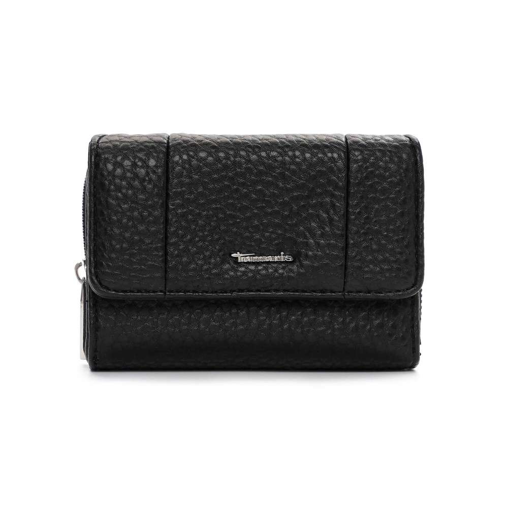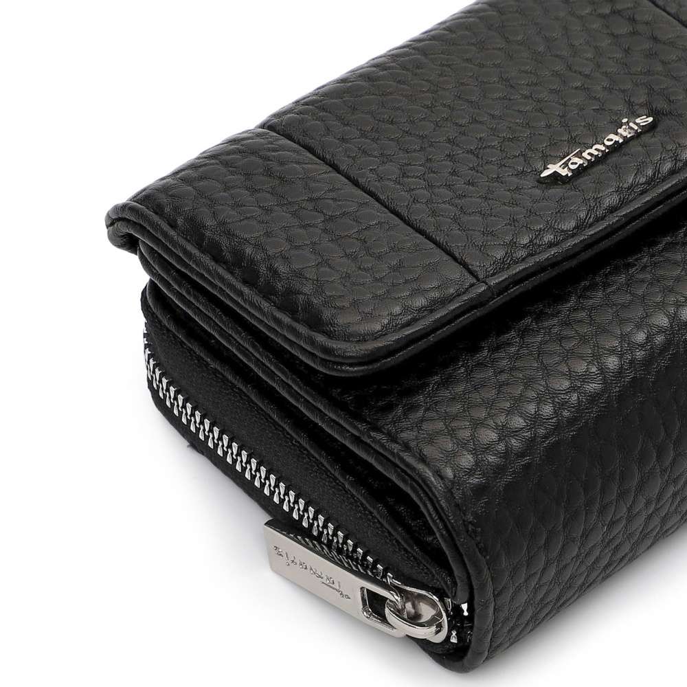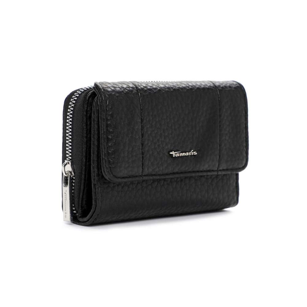 Nadčasová černá barva této peněženky TAMARIS propůjčuje doplňku univerzální eleganci, dekorativní logo značky v stříbrném provedení podtrhuje její moderní styl. Praktické uzavírání na druk zajišťuje snadný přístup k přehledně řešenému vnitřnímu prostoru. Uvnitř naleznete dostatek přihrádek na platební karty, doklady i osobní dokumenty, stejně jako samostatný oddíl pro bankovky, který udrží vše přehledně uspořádané. O bezpečné uložení mincí se postará oddělená kapsa na zip, díky které budete mít drobné vždy pod kontrolou. Tato peněženka TAMARIS je ideální volbou pro ženy, které oceňují kvalitní zpracování, nadčasový design a praktické členění.