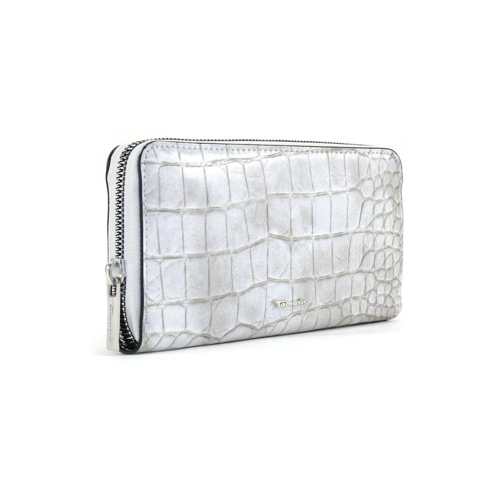 Šedá peněženka s decentním logem značky Tamaris a vzorem imitace zvířecí kůže.