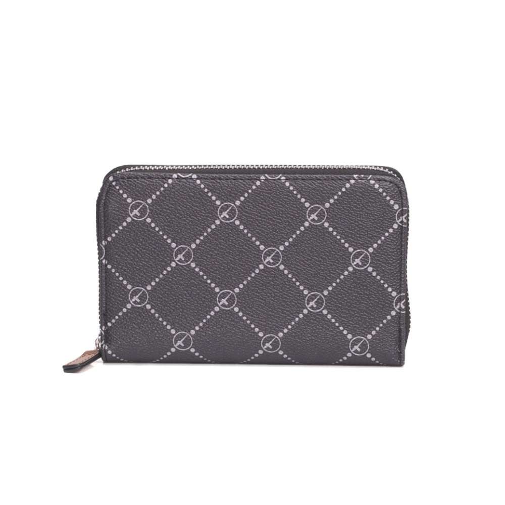 Černá peněženka malých rozměrů bude pro Vás praktickým doplňkem. Hladký svršek zdobí vzor, který je pro značku Tamaris specifický. Pod zipem se skrývá zapínací kapsička na mince a dvě otevřené na bankovky. Kapsa na cvoček obsahuje přihrádky na karty a také zde, pod průhlednou folií, najdete místo např. pro fotky svých blízkých či jiné cennosti.
