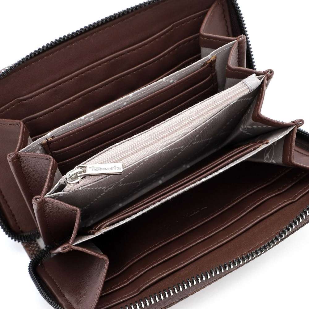 Tuto stylovou peněženku Tamaris budete zkrátka milovat. Svršek je nabízený ve třech barevných provedení v kombinaci s designovým potiskem, takže si tu pravou vybere jistě každá z nás. Přední strana je dozdobena znáčkem s logem Tamaris, který dokonale doplňuje vzhled modelu. Peněženka je uzavíratelná na zip, po jehož otevření naleznete několik přihrádek na bankovky, karty a kapsičku na drobné mince. Tento perfektní kousek se stane Vaším oblíbeným doplňkem pro každý den.