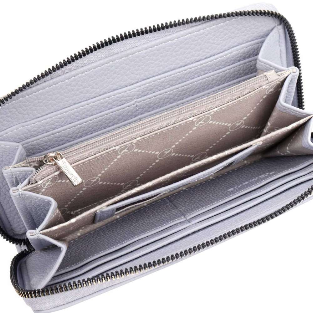 Peněženka TAMARIS působí decentním a neutrálním dojmem, hladký svršek zdobí logo značky. Vrchní zip uzavírá vnitřní prostor, kde najdeme praktické kapsičky na karty, papírové peníze a kapsičku uzavíratelnou zipem, vhodnou například na drobné mince. Tato peněženka bude skvělým doplňkem ke kabelce TAMARIS v naší kolekci.