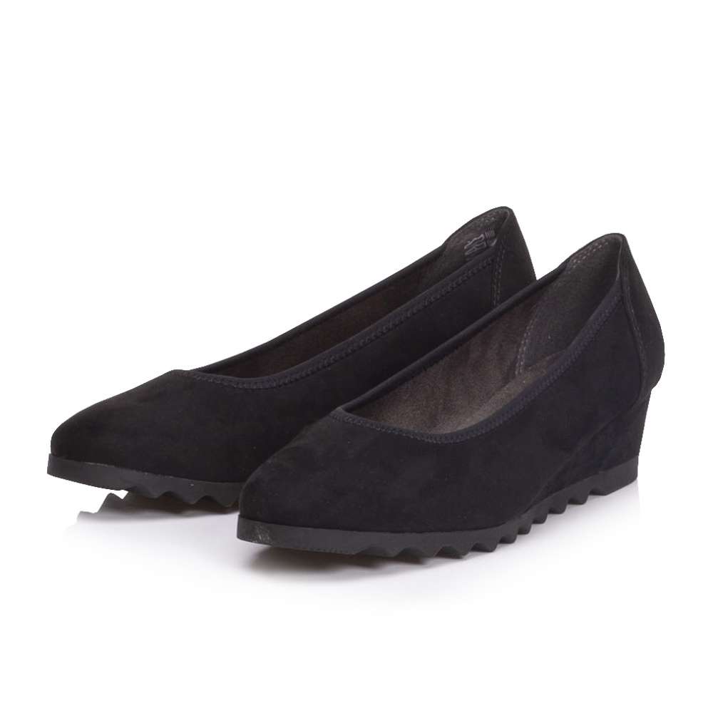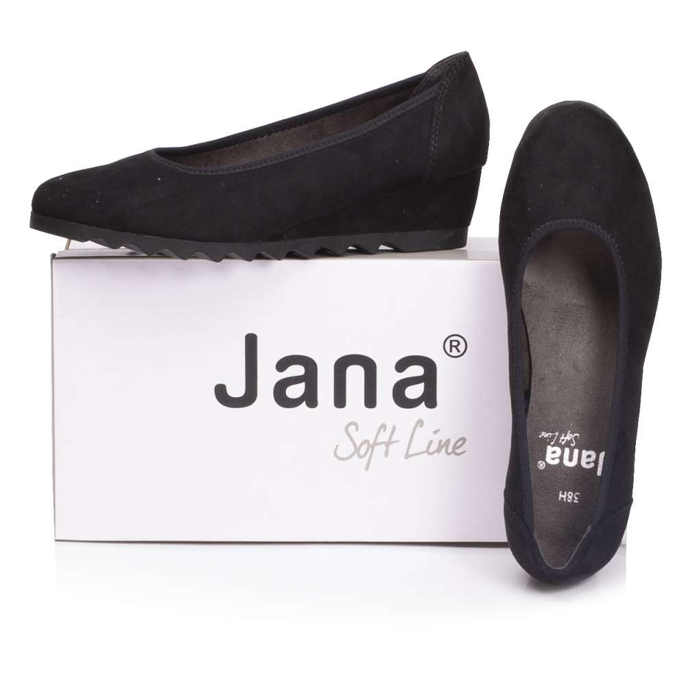 Baleríny na klínku značky JANA, budou tou pravou volbou pro všední i nevšední dny. Textilní svršek je jednoduchý a zároveň elegantní. Podešev má hrubší vzorek a díky měkké stélce se budete v tomto modelu cítit velmi komfortně i po celodenním chození.