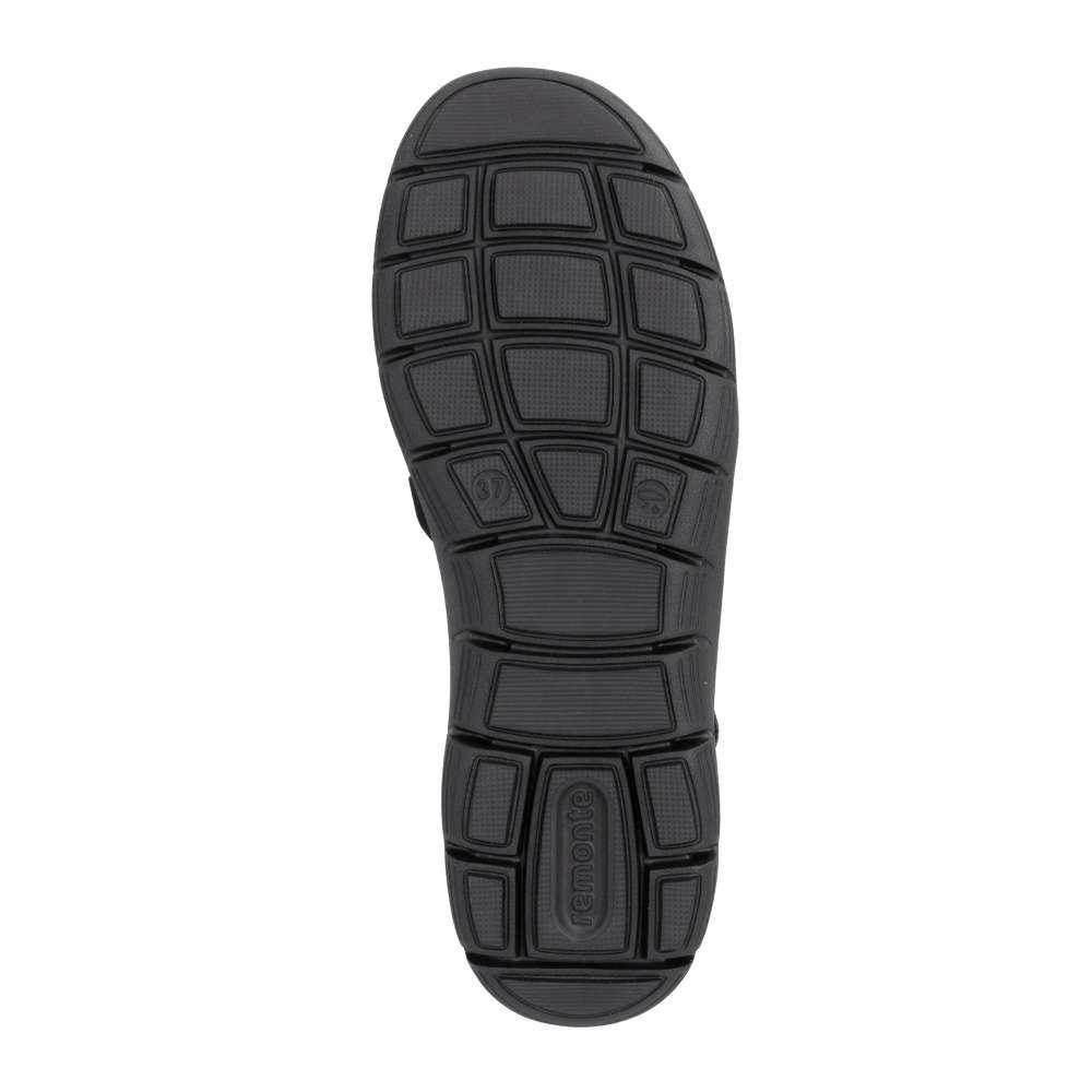 Obuv REMONTE představuje prémiovou řadu značky RIEKER, která se vyznačuje vysokou kvalitou použitých materiálů a precizním zpracováním. Tyto lehké boty RIEKER nabízí spojení vzdušnosti, pohodlí a moderního vzhledu – přesně to, co během teplých dnů potřebujete. Černý svršek je doplněn poddajnými textilními částmi, které zvyšují prodyšnost a přispívají k celkovému komfortu i při delším nošení. V oblasti paty zaujme lesklý ozdobný prvek, který dodává modelu moderní akcent svými decentními odlesky. Praktický pružný pásek přes nárt je doplněn suchým zipem, takže si obuv jednoduše přizpůsobíte podle potřeby a zajistíte její stabilní držení na noze. Komfort při každém kroku zajišťuje tvarovaná vyjímatelná stélka, která se přizpůsobí chodidlu a v případě potřeby ji můžete nahradit stélkou dle individuálních potřeb. Flexibilní podešev zase zajišťuje přirozený pohyb a příjemnou lehkost při chůzi. Tento model je skvělým společníkem na běžné nošení, procházky městem i volný čas – přesně tím, co v létě oceníte nejvíc.