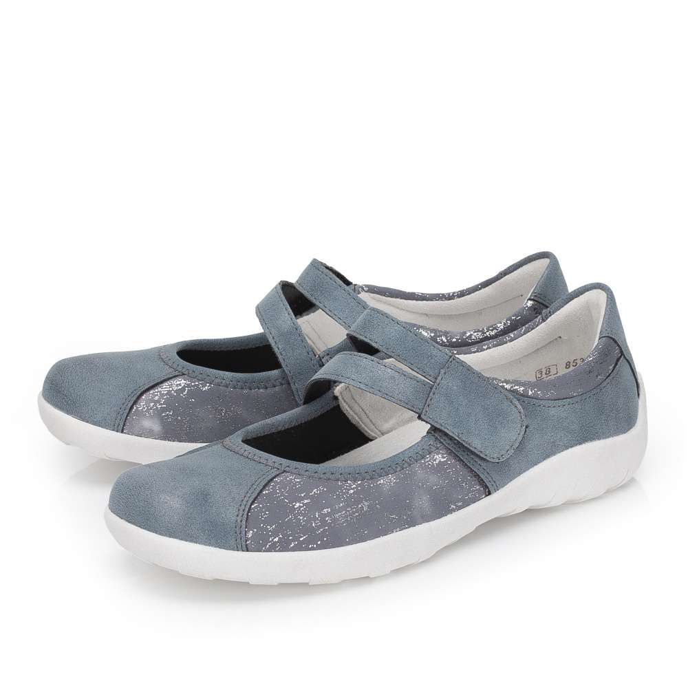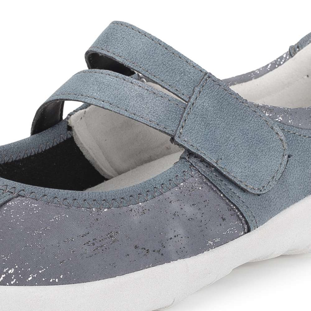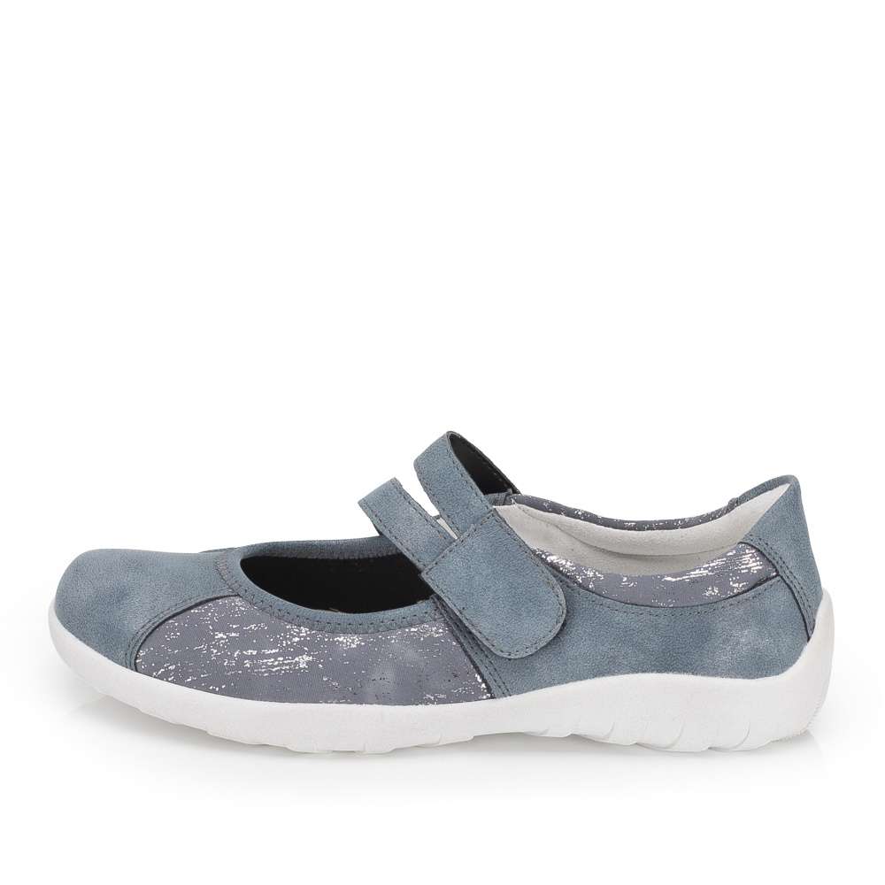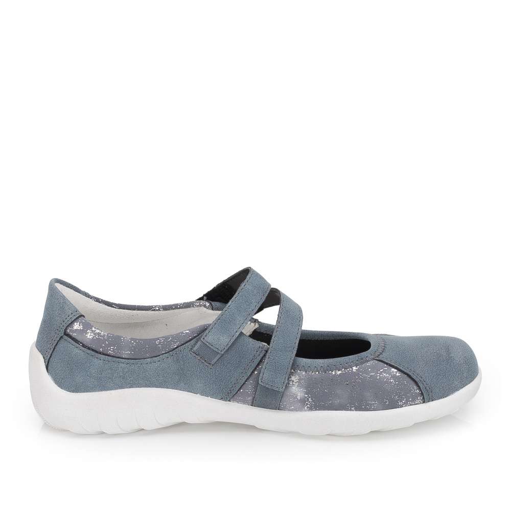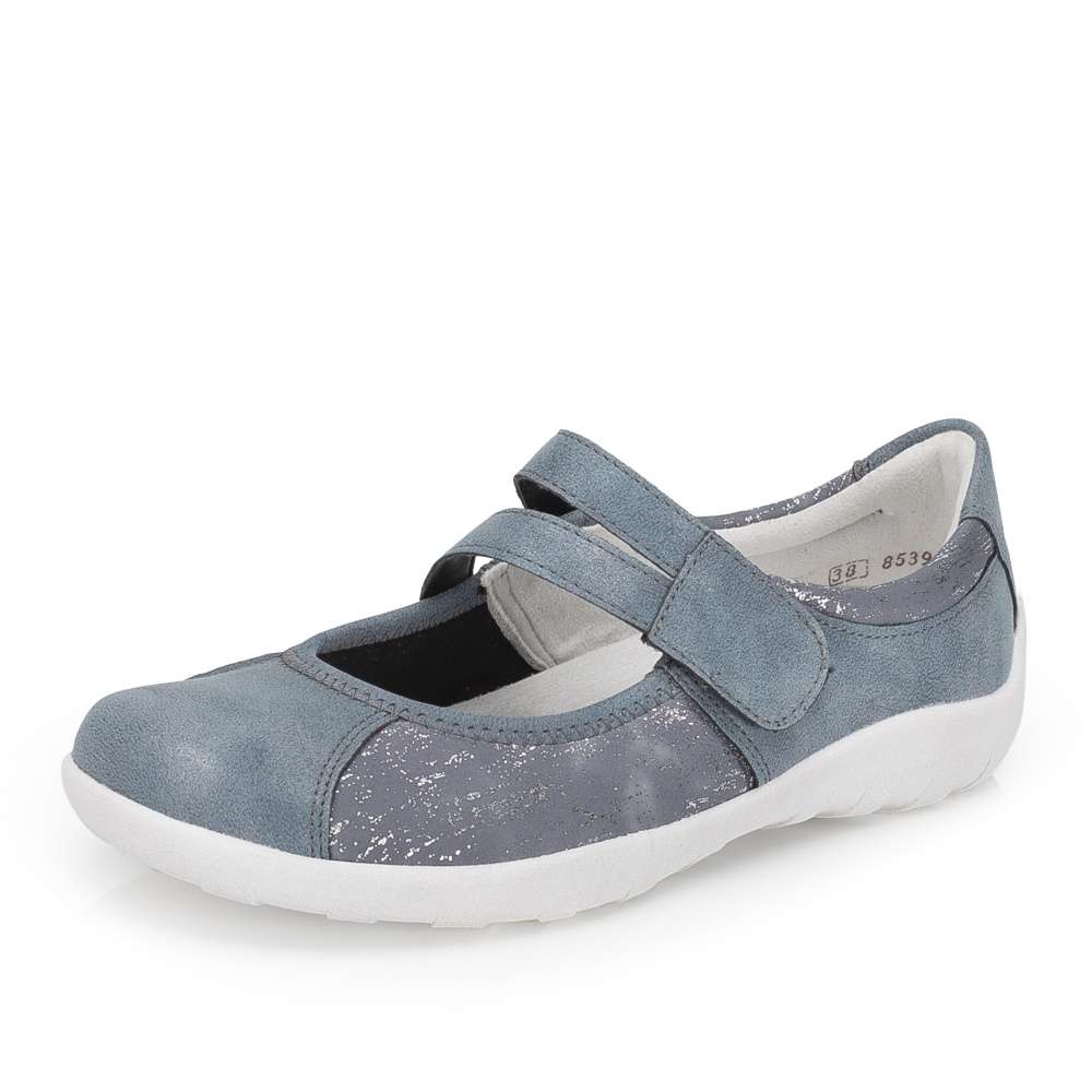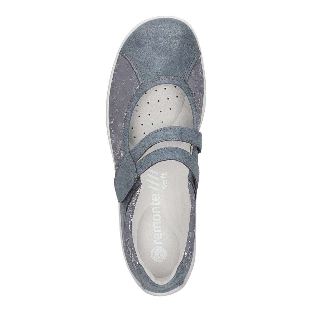 Obuv REMONTE představuje prémiovou řadu značky RIEKER, která se vyznačuje vysokou kvalitou použitých materiálů a precizním zpracováním. Tyto dámské baleríny RIEKER jsou více než jen obyčejná obuv – jsou vyjádřením jedinečného stylu a radosti z pohybu. Modrý svršek zdobí působivý potisk s jemnými odlesky, který botám dodává originální charakter a činí z nich nepřehlédnutelný doplněk každého outfitu. Pružný materiál se přirozeně přizpůsobí tvaru chodidla, čímž zajistí pohodlné nošení bez tlaku. Pro maximální pohodlí je pásek přes nárt na jedné straně pružný a přirozeně se přizpůsobí tvaru nohy, zatímco druhá strana má praktický suchý zip, který umožňuje snadné nazutí a dokonalé uchycení. Vyjímatelná stélka je měkká a jemně kopíruje tvar chodidla, takže pocit komfortu přetrvává během celého na. Tyto baleríny spojují působivý vzhled a dokonalé pohodlí, díky čemuž se stanou vaším každodenním společníkem.