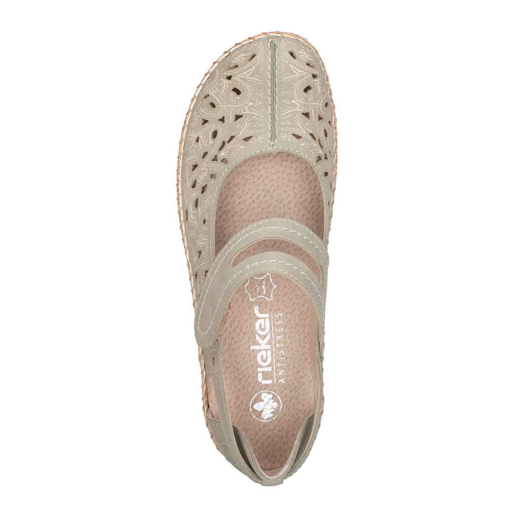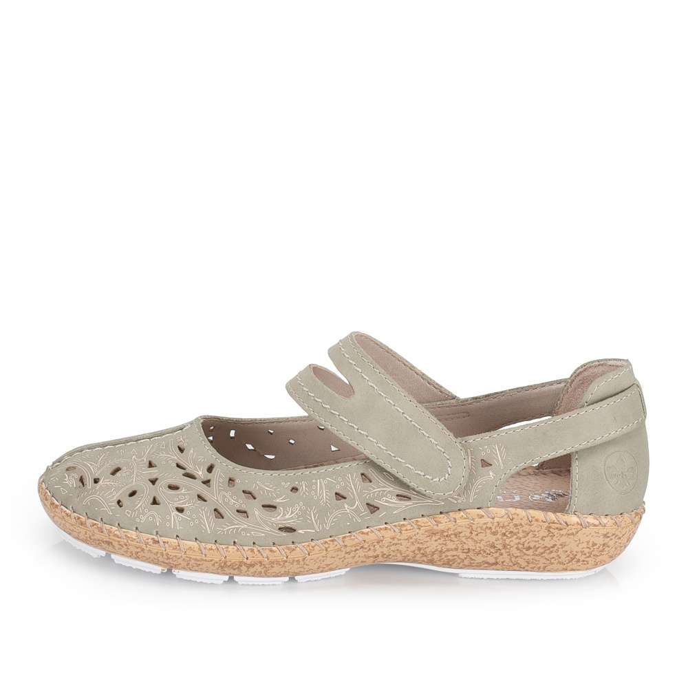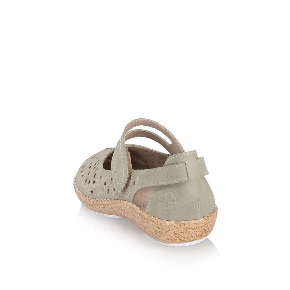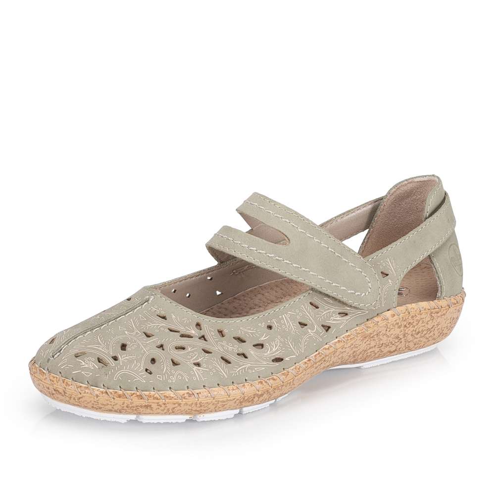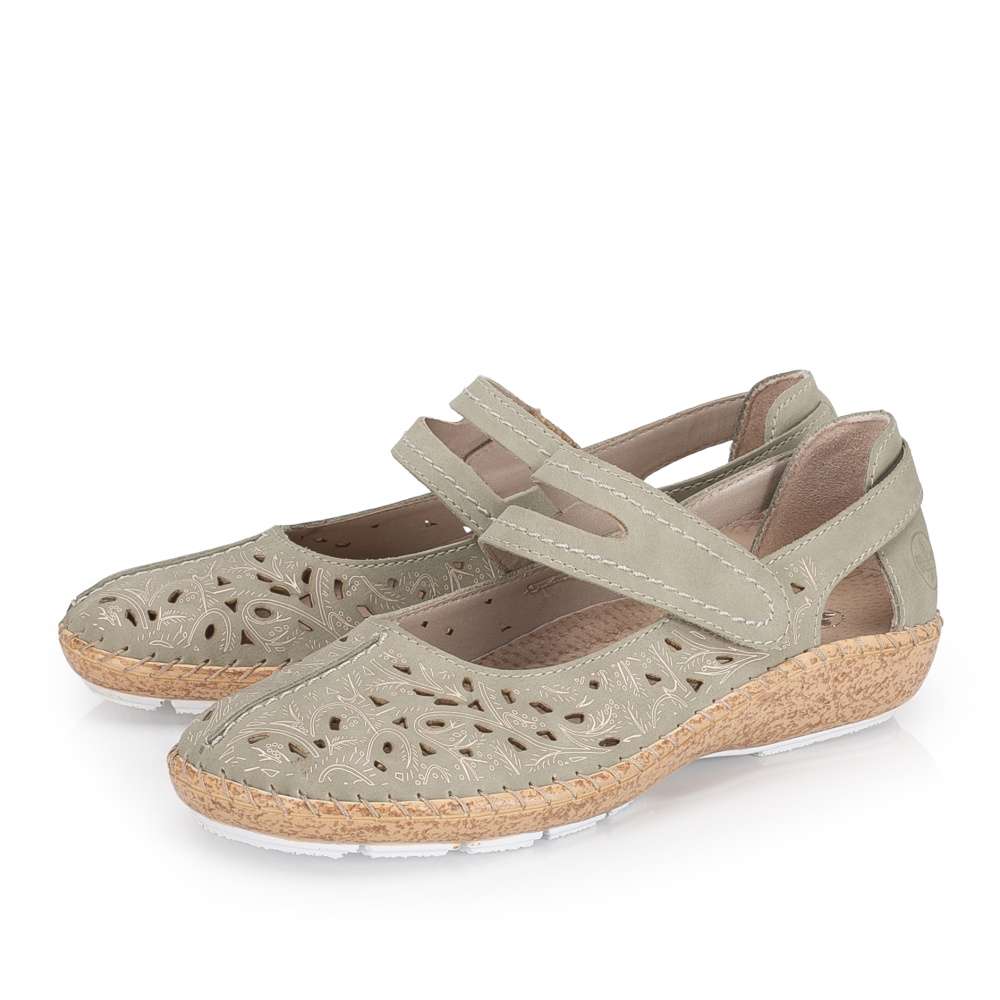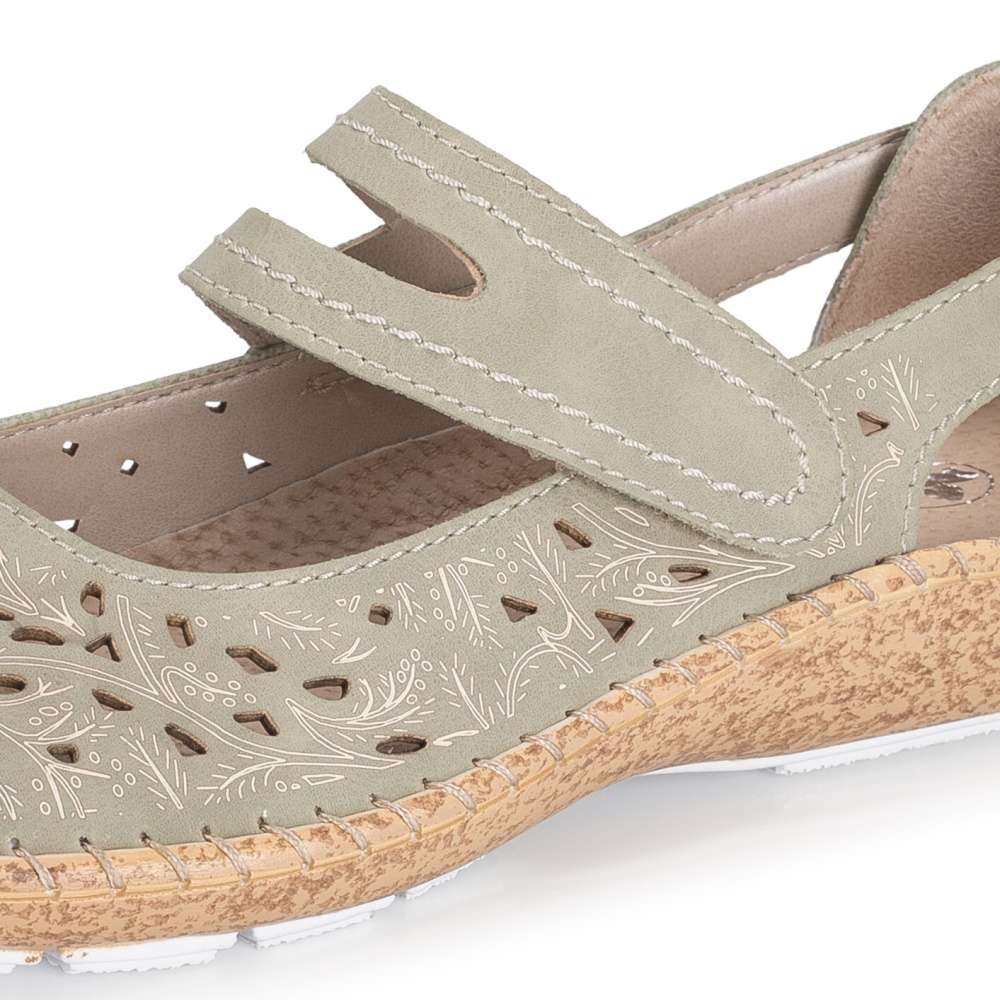 Pohodlí během teplých dnů vám zaručí tyto šarmantní boty RIEKER. Zelený svršek je ozdoben designově vtlačeným vzorem a elegantní perforací, která zaručí dobré odvětrávání. Pásek přes nárt se suchým zipem, je stejně jako zbytek povrchu prošit kontrastní nití, navíc umožňuje snadné nazutí a přizpůsobení dle vašich potřeb. Maximální komfort při nošení zajistí kožená stélka a podešev tlumící nárazy při chůzi, která zajišťuje příjemný krok během celého dne. Tento velmi pohodlný a módní vzor unosíte ke kalhotám, ale i k sukni, budete se v něm cítit pohodlně po celý den.