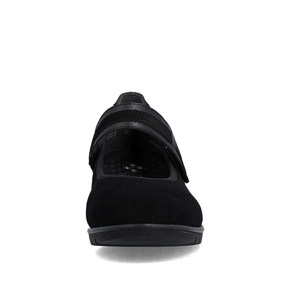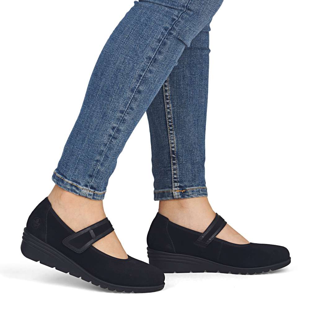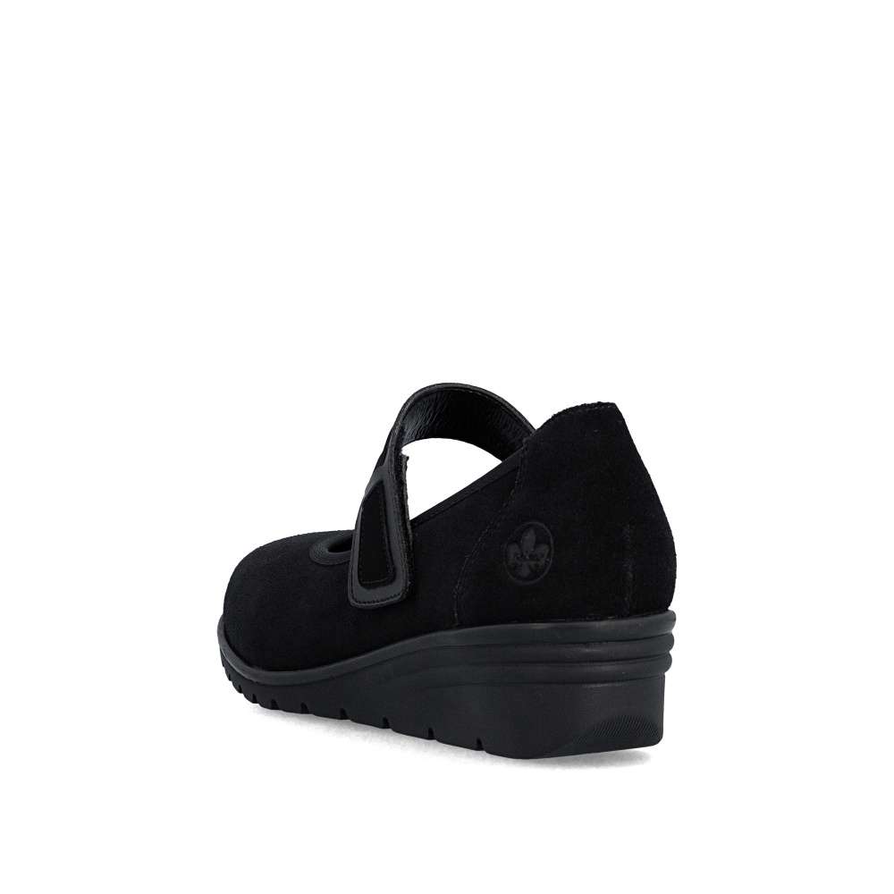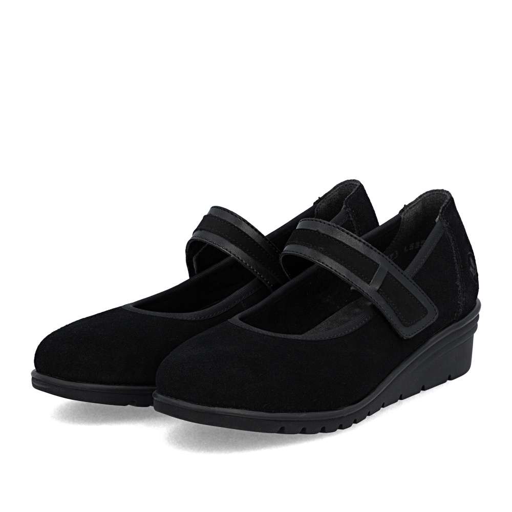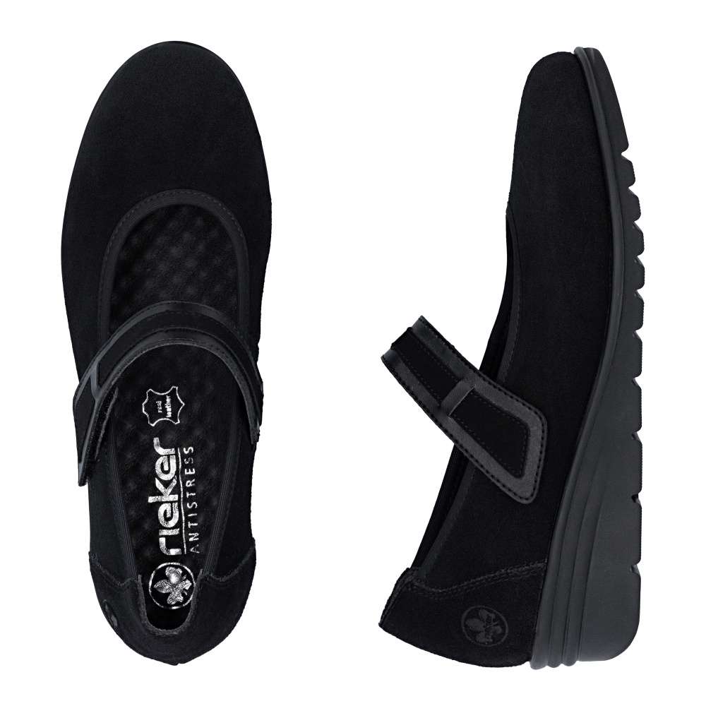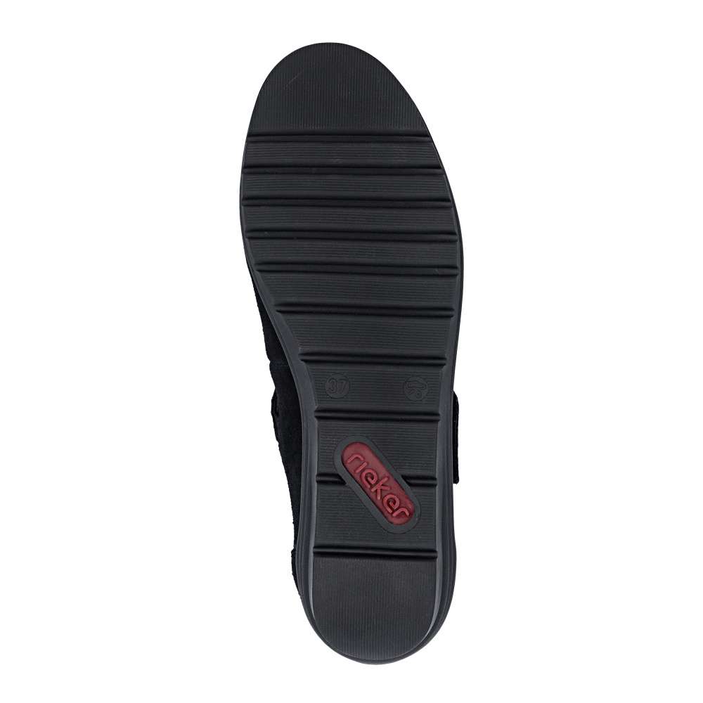 Tyto baleríny RIEKER jsou oslavou ženskosti v dokonale pohodlném provedení. Nadčasová černá barva koženého svršku dodává modelu univerzální vzhled, zatímco proužek přes nárt s precizním nastavením pomocí suchého zipu zaručuje snadné nazutí a dokonalé uchycení chodidla. Uvnitř balerín se nachází kožená stélka s výraznou strukturou, která poskytuje pocit komfortu a každý krok přeměňuje v požitek svým masážním efektem. Vyšší podešev tlumí nárazy, podporuje přirozený pohyb a dodává jistotu při chůzi. Tyto baleríny RIEKER jsou dokonalým spojením stylu a komfortu – nosíte je do práce, na procházky či k oblíbenému outfitu a každý váš krok v nich působí elegantně, lehce as nádechem ženského šarmu.