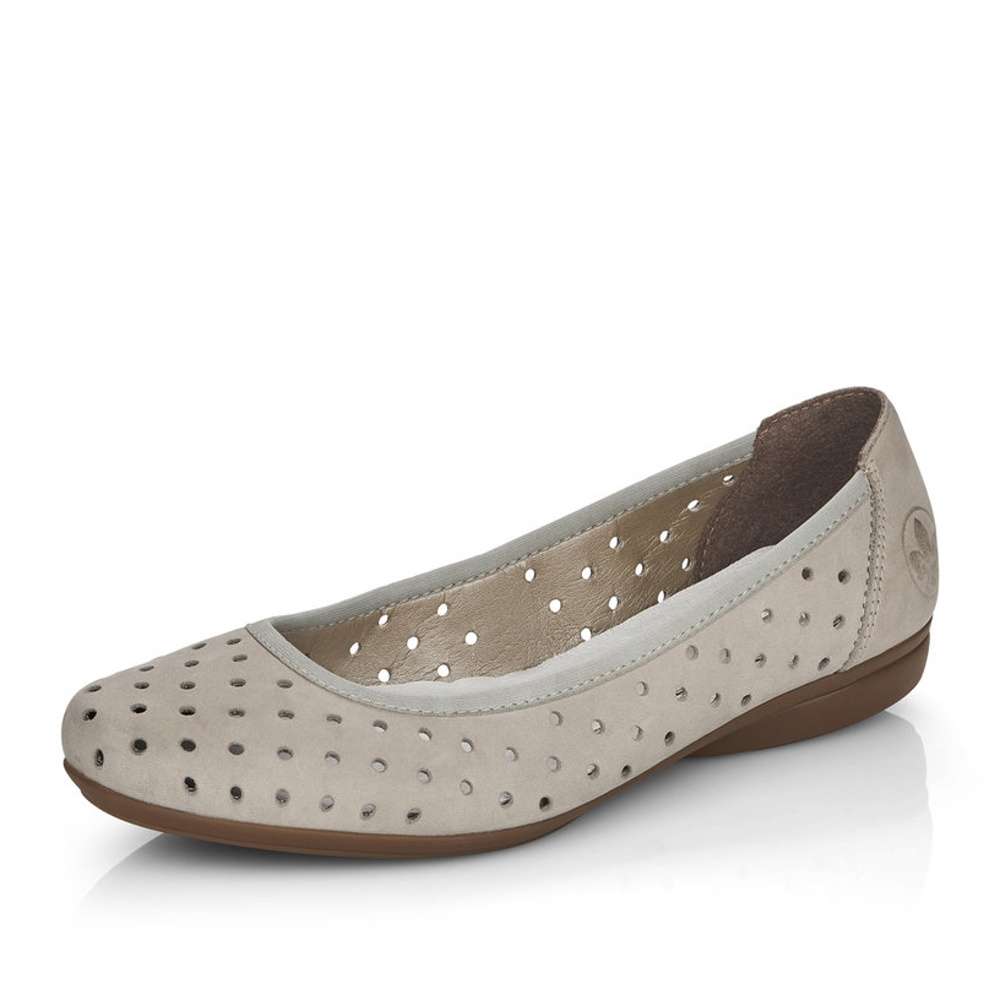 Detailní informace Dámské balerínky od značky RIEKER s perforovaným svrškem v jednoduchém stylu. Obuv si jednoduše nazujete a můžete vyrazit. Jistě také oceníte měkkou stélku z přírodní usně, která dodá běžné chůzi pohodlnost a komfort. Obuv vhodná jak ke kalhotám, tak k sukni.