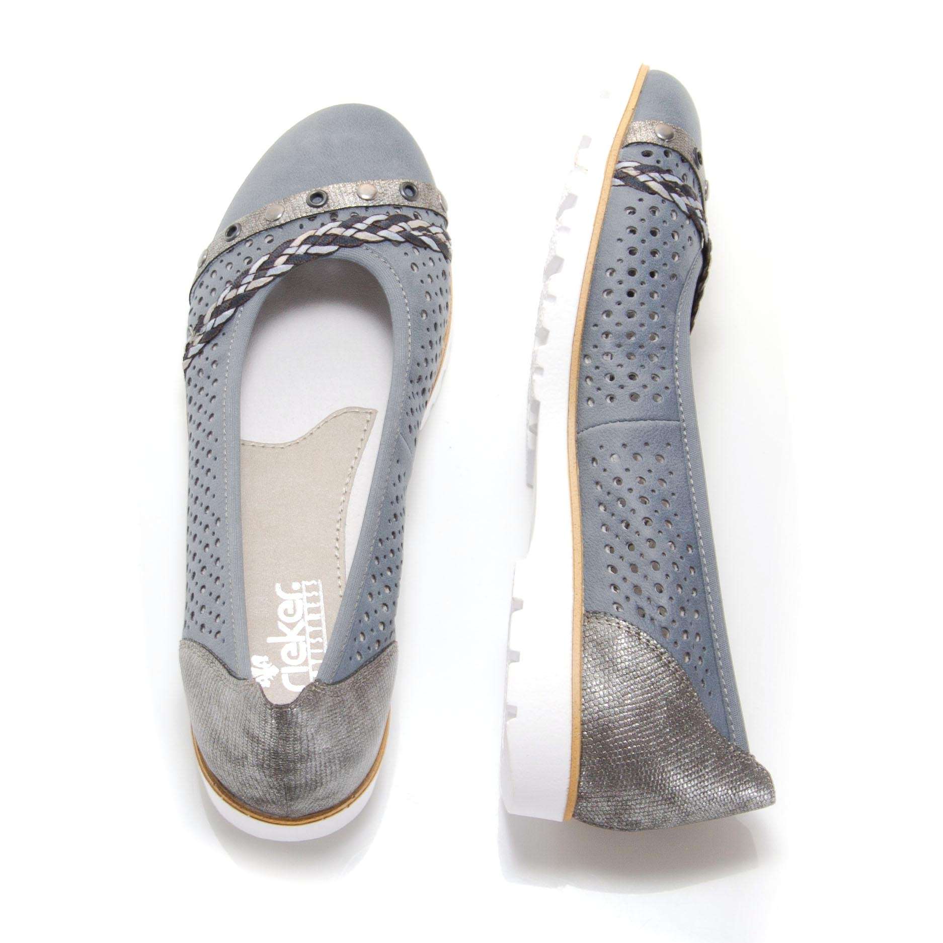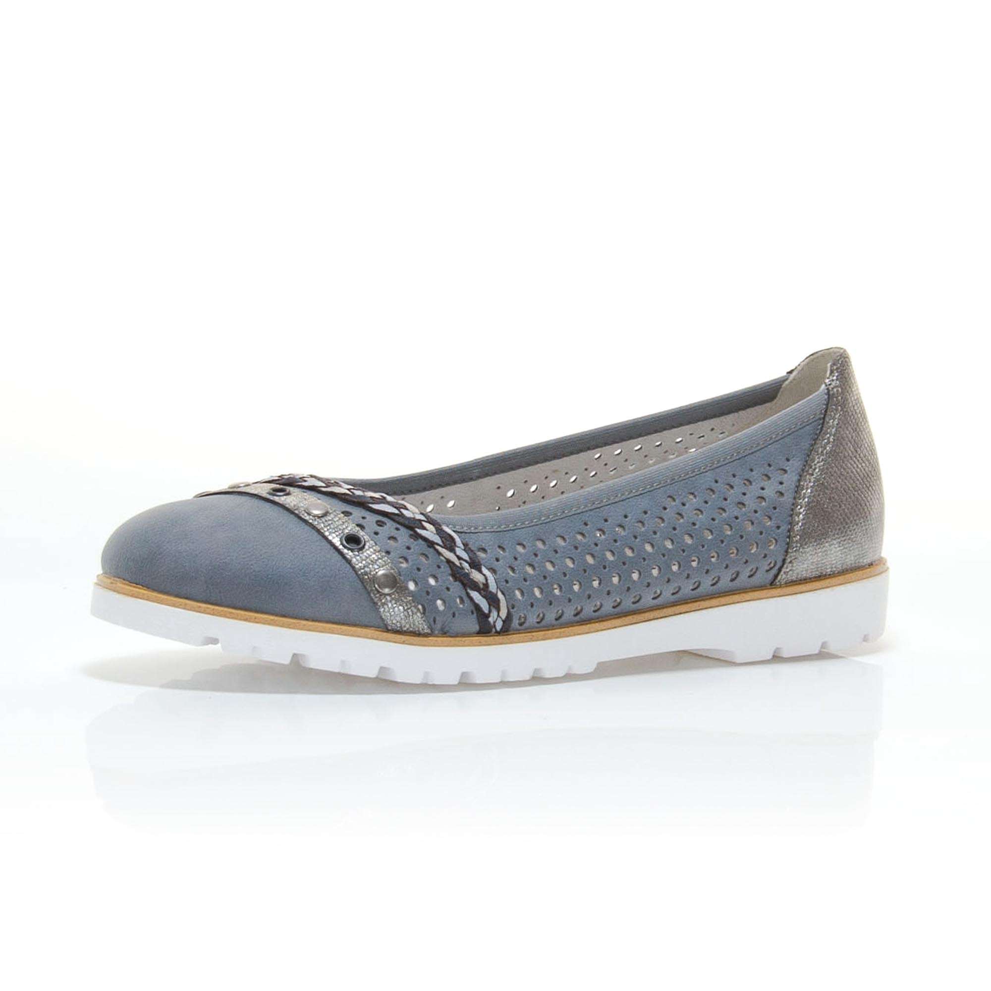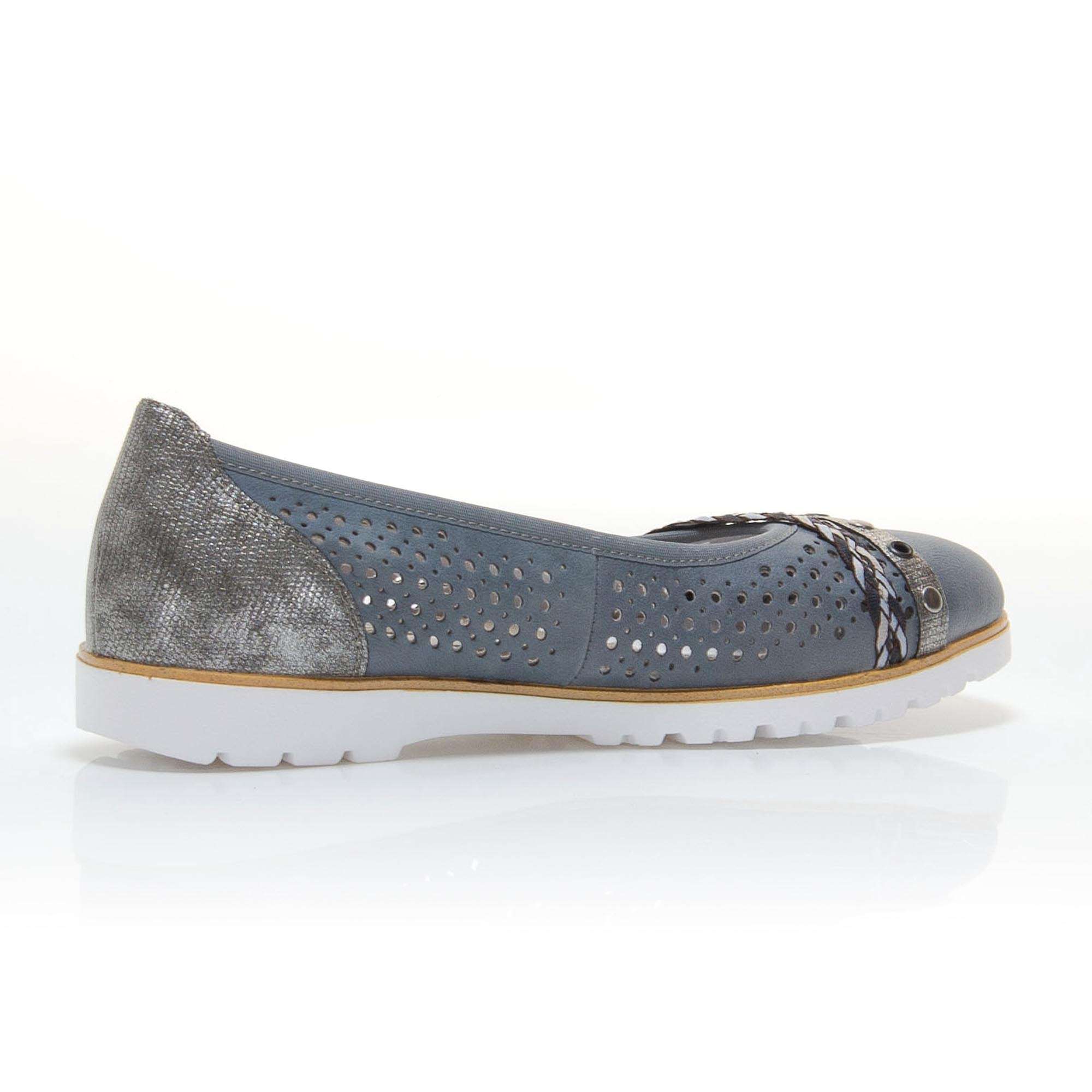 Dámské baleríny na nízké podešvi ve světle modré barvě zdobené perforací a v přední části pak dvěma pásky. Navíc mají boty pružný okraj, který podpoří příjemné nošení po celý den. Obuv je díky výše zmíněným vlastnostem vhodná jak do města, tak do kanceláře.