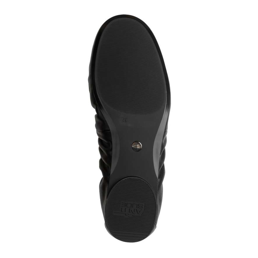 Tyto baleríny Tamaris představují ukázku decentního stylu a nadčasové elegance. Jejich černý kožený svršek v čistých liniích a se zaoblenou špičkou vytváří sofistikovaný a univerzální vzhled, který snadno doplní různé outfity – od každodenního nošení až po elegantnější příležitosti. Kožená stélka poskytuje přirozený komfort svou měkkostí, zatímco flexibilní podešev s protiskluzovou úpravou zaručuje pohodlnou a stabilní chůzi po celý den. Minimalistický design v kombinaci s kvalitním zpracováním činí tyto baleríny Tamaris ideální volbou pro ženy, které chtějí spojit eleganci, komfort a praktičnost v jednom modelu. Technologie: Touch-it – měkká stélka, která se dokonale přizpůsobí tvaru nohy, a díky tomu při nošení zajišťuje optimální pohodlí. ANTISLIDE – obuv s patentovaným protiskluzovým prvkem v podpatku, který výrazným způsobem snižuje riziko uklouznutí na kluzkém povrchu.