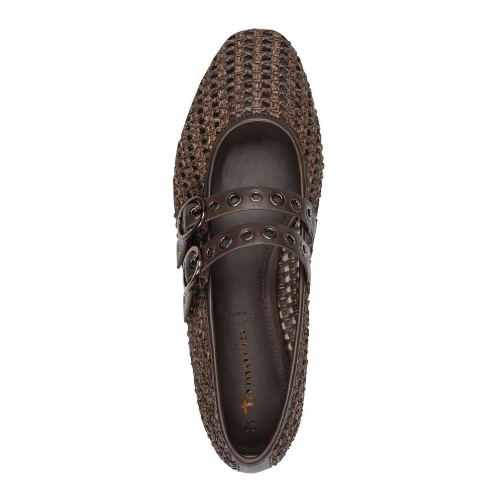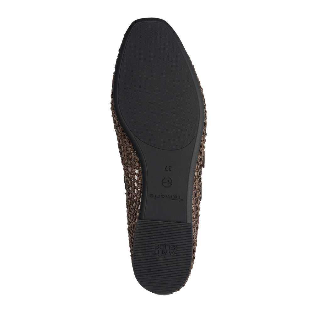 Tyto baleríny Tamaris v atraktivním vzhledu okamžitě upoutají pozornost a stanou se nepřehlédnutelným prvkem vašeho outfitu. Jejich textilní svršek s perforovaným vzorem zajistí půvabný vzhled i komfortní pocit v horkých dnech. Stylový vzhled doplňují působivé pásky přes nárt s nastavitelnou sponou, které nejen zdůrazňují ladnost nohy, ale zároveň umožňují dokonalé přizpůsobení šířce chodidla pro maximální pohodlí při chůzi. Měkká stélka z paměťové pěny Touch-it se přizpůsobí tvaru vaší nohy a zajišťuje komfort, který oceníte při každém kroku. Podešev je navržena s protiskluzovou úpravou pro zajištění bezpečnosti při chůzi. Baleríny Tamaris představují dokonalou kombinaci stylu, pohodlí a originality – jsou to boty, které z vás udělají dámu s citem pro detail a osobitý vkus.