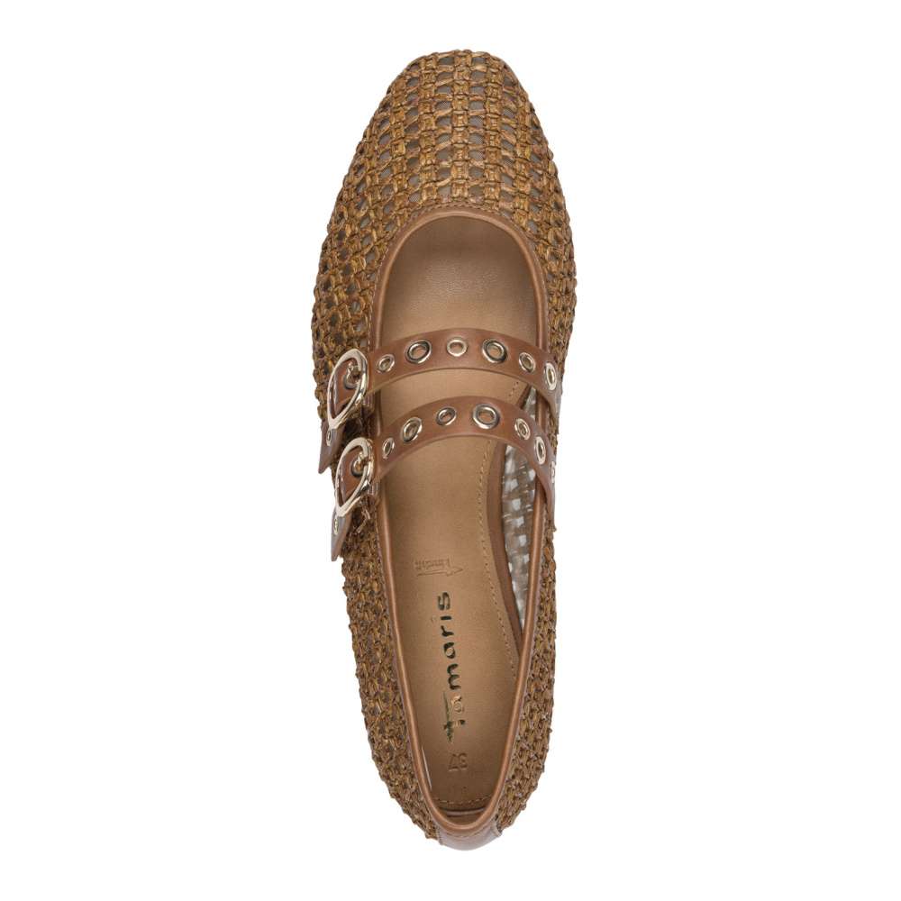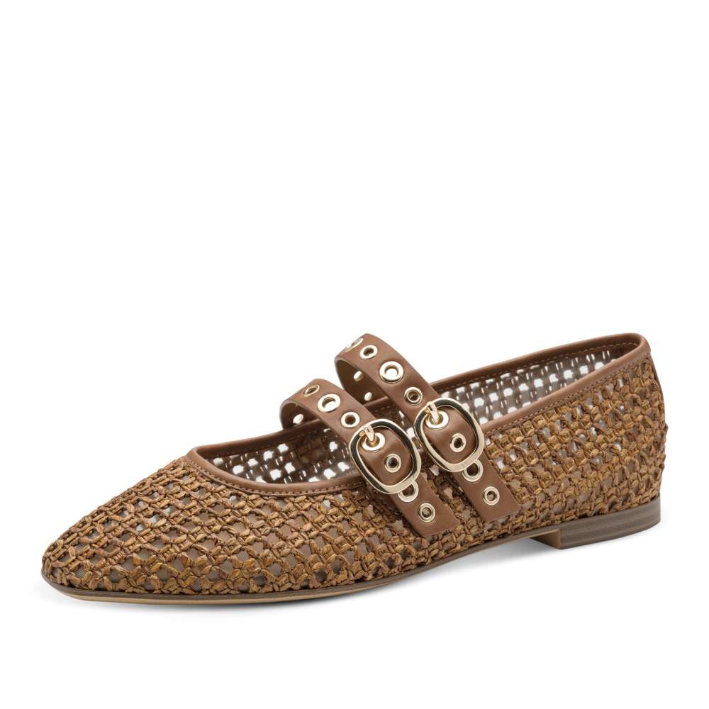 Tyto baleríny Tamaris v atraktivním vzhledu okamžitě upoutají pozornost a stanou se nepřehlédnutelným prvkem vašeho outfitu. Jejich textilní svršek s perforovaným vzorem zajistí půvabný vzhled i komfortní pocit v horkých dnech. Stylový vzhled doplňují působivé pásky přes nárt s nastavitelnou sponou, které nejen zdůrazňují ladnost nohy, ale zároveň umožňují dokonalé přizpůsobení šířce chodidla pro maximální pohodlí při chůzi. Měkká stélka z paměťové pěny Touch-it se přizpůsobí tvaru vaší nohy a zajišťuje komfort, který oceníte při každém kroku. Podešev je navržena s protiskluzovou úpravou pro zajištění bezpečnosti při chůzi. Baleríny Tamaris představují dokonalou kombinaci stylu, pohodlí a originality – jsou to boty, které z vás udělají dámu s citem pro detail a osobitý vkus.