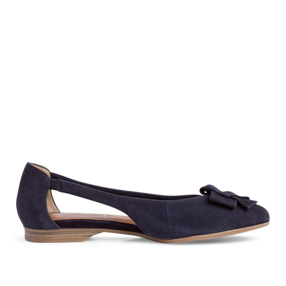 Nádherné dámské balerínky jsou zdobené mašlí na špici a designovými otvory po stranách. Mají kulatou špičku, kožený broušený srvšek a pružnou gumičku na vnější straně pro snadné obutí.