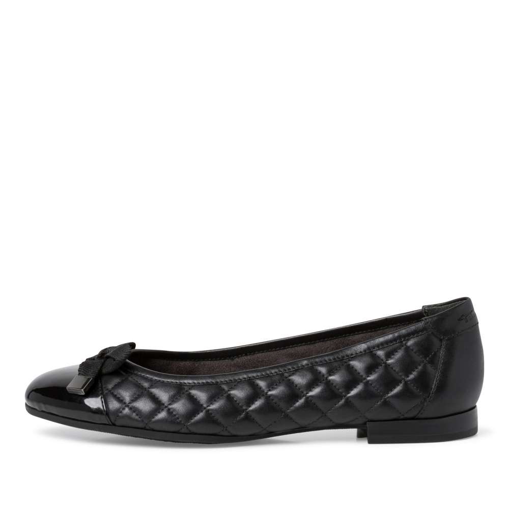 Dámské kožené baleríny značky TAMARIS s kulatou špičkou jsou klasickým kouskem, který nesmí chybět ve Vašem botníku. Svršek je kombinací kůže a syntetiky. Ve přední části je zdobený jemnou mašličkou a doladěn nízkým podpatkem. Ze zadní části je vyraženo logo značky. Boty jsou ideální volbou na procházku městem nebo do práce.