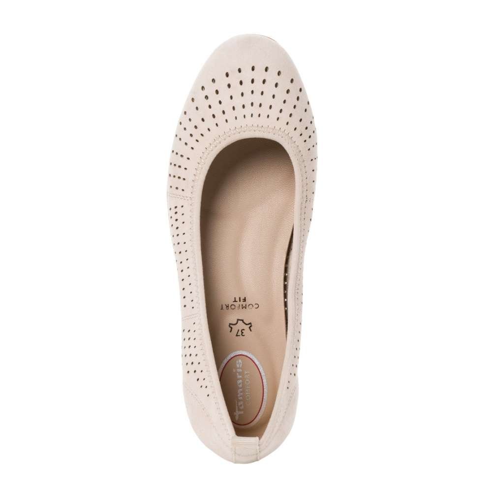 Tyto originální, vysoce pohodlné baleríny značky Tamaris, Vás zaujmou na první pohled. Kožený svršek je perforovaný a obuvi dodává na jedinečnosti a zároveň Vám díky tomuto provzdušnění bude v botkách příjemně i v tom největším parnu. Měkoučká vyjímatelná stélka Vám zaručí to nejvyšší pohodlí po celý den. Díky rozšíření v oblasti prstů a nártu je obuv vhodná i pro širší chodidla. Ať už se vydáte do města či do práce, budete vypadat dokonale a cítit se fantasticky.