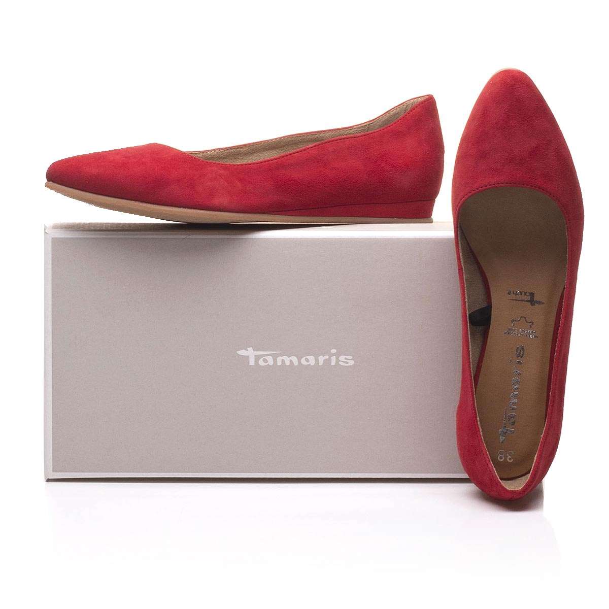 Dámské kožené balerínky červené barvy, značky TAMARIS.
