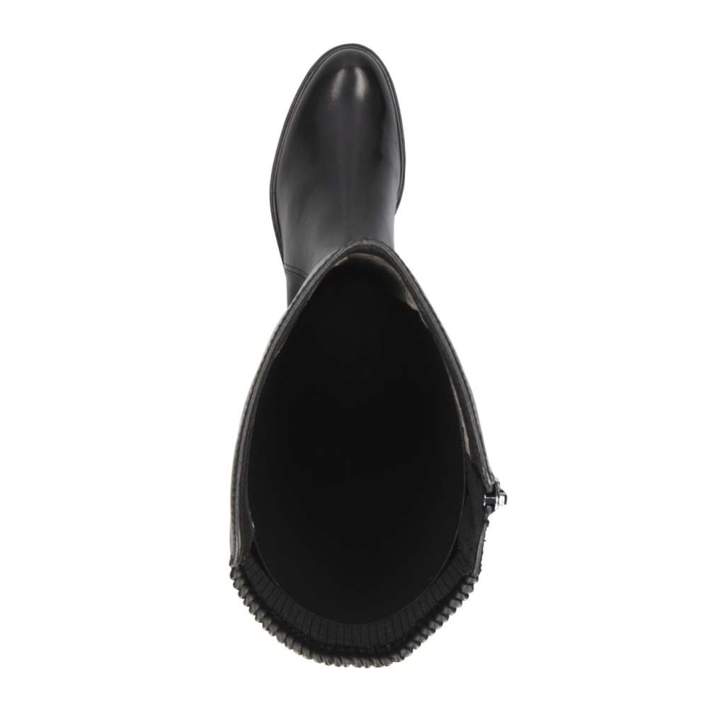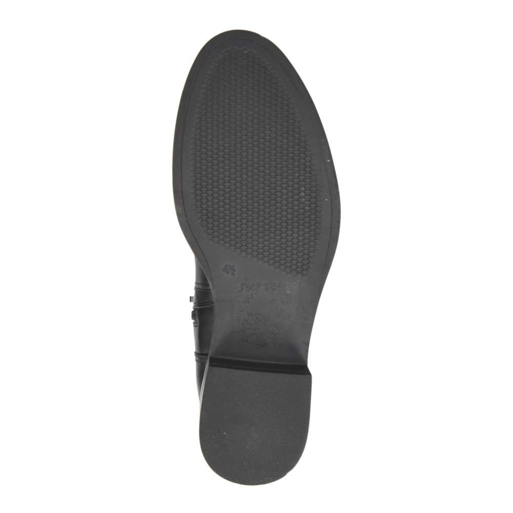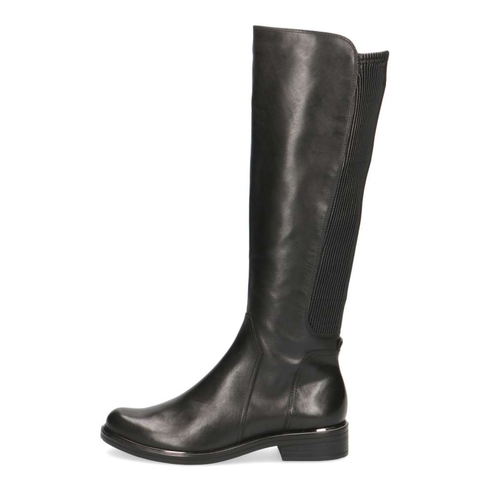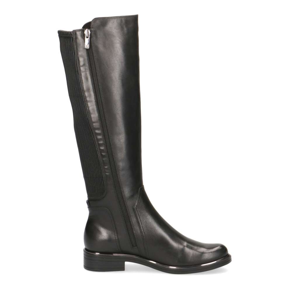 Hladký kožený svršek je ozdoben jemným prošíváním a jeho zadní strana je vyrobena z pružného stretchového materiálu, který se přizpůsobí obvodu Vašeho lýtka.