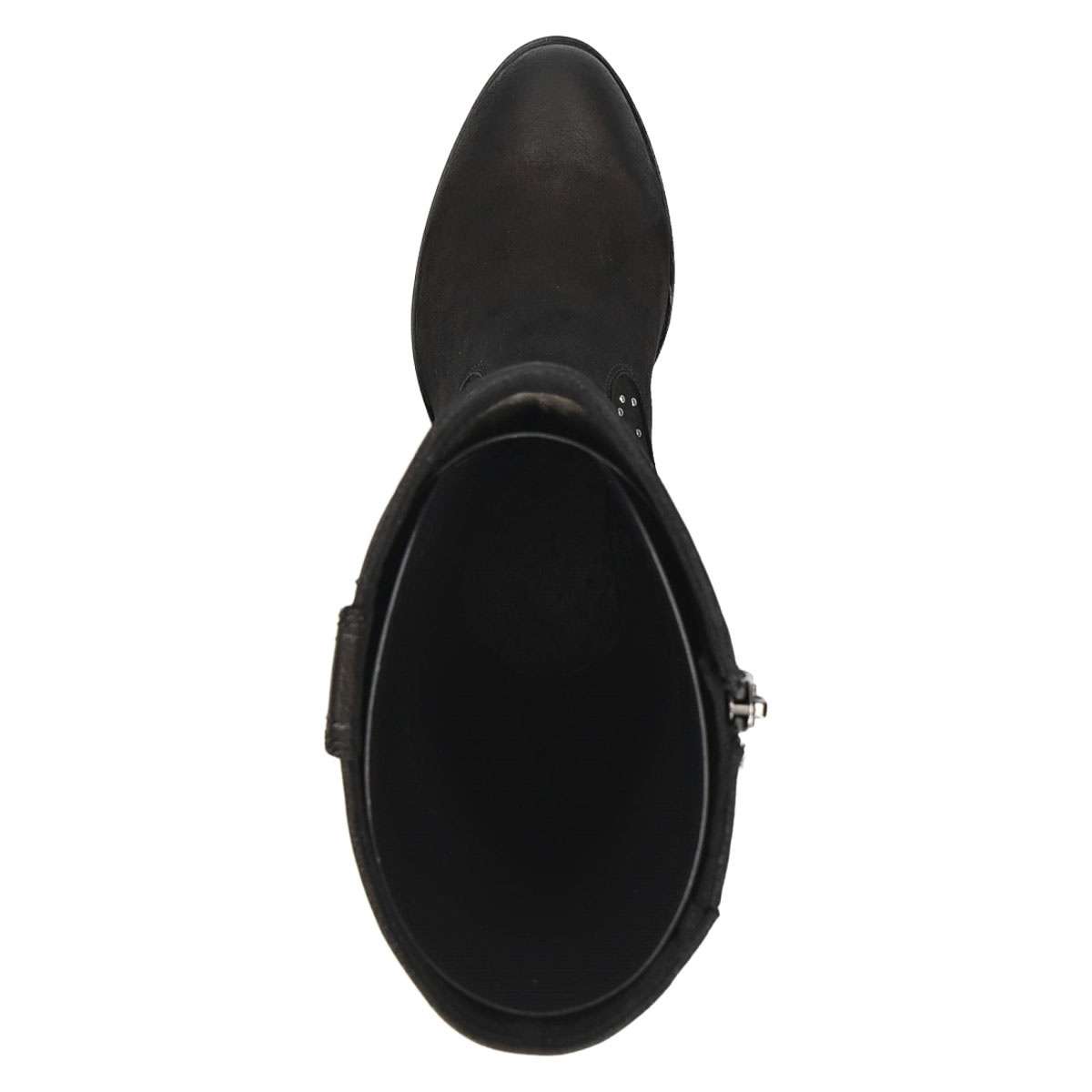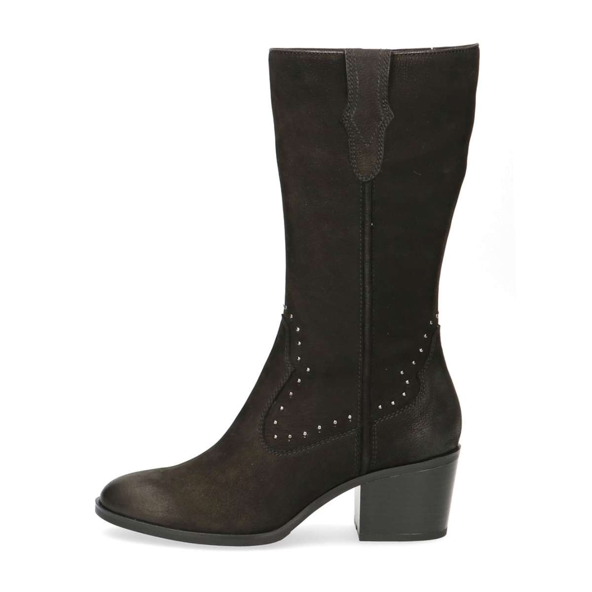 Polokozačky od značky CAPRICE se zdobnými cvočky a jemným prošitím jsou vyrobeny z pravé kůže v černém provedení. Pro snadnější obutí je zapracován zip na vnitřní straně a vsazená pružná gumička u horního okraje.