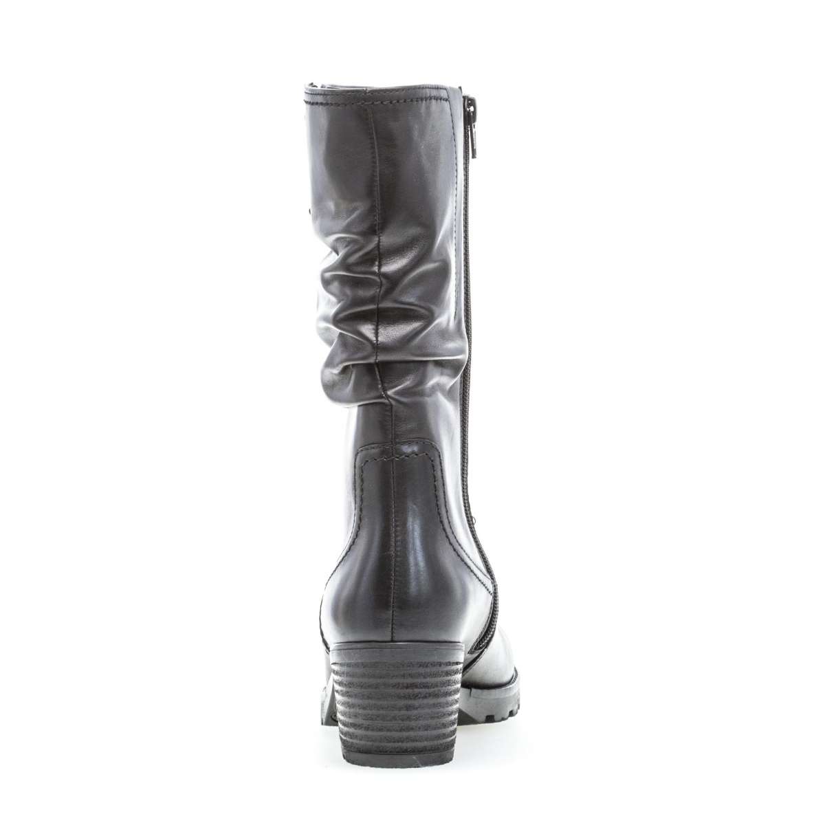 Svršek je zdoben prošíváním kolem nártu. V oblasti lýtka je kůže efektně zvrásněná. Jsou zatepleny jemným filcem. Mají užší kulatou špičku a z vnitřní strany všitý zip a pružnou gumičku pro snadné obouvání.