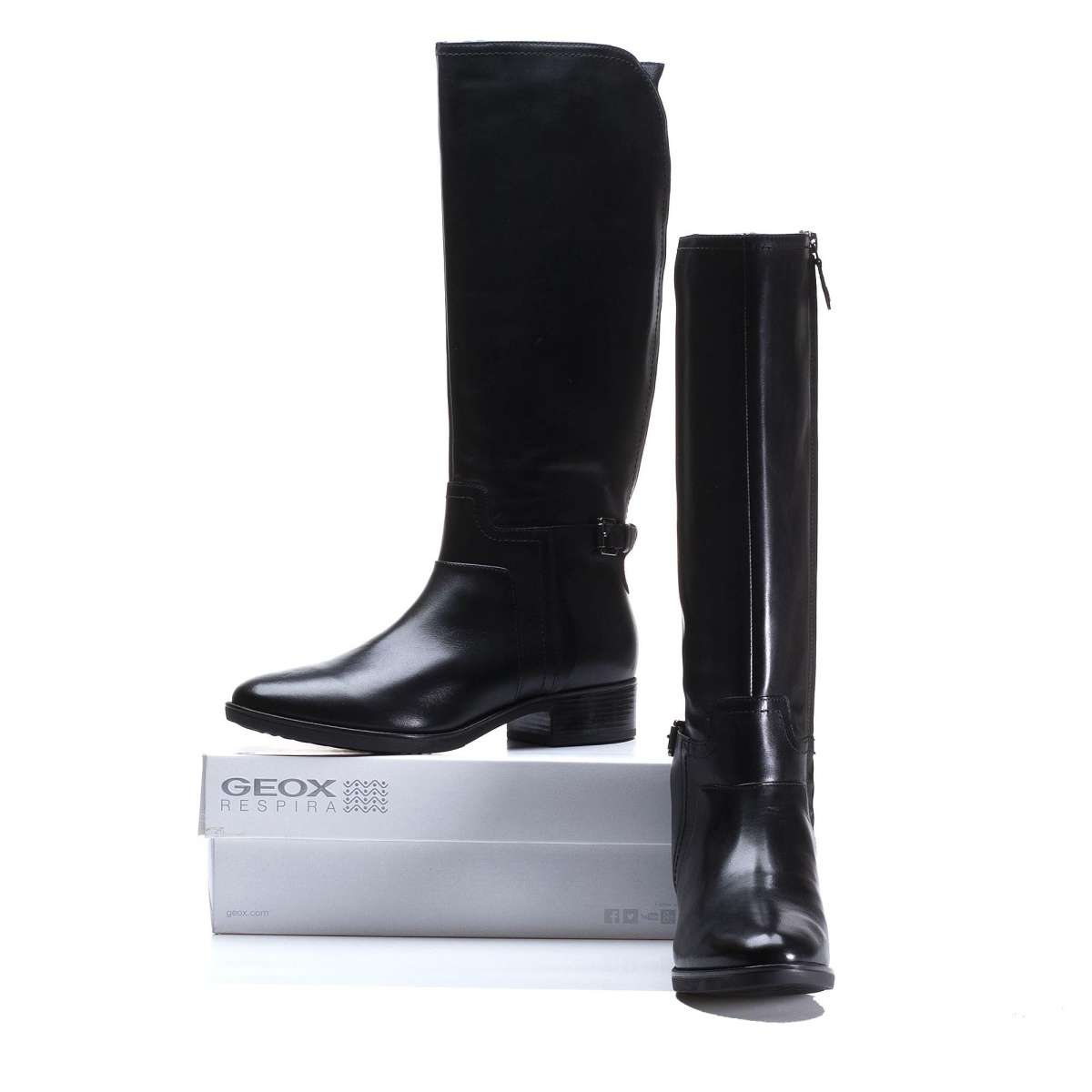 Dámské kožené kozačky černé barvy, značky GEOX.