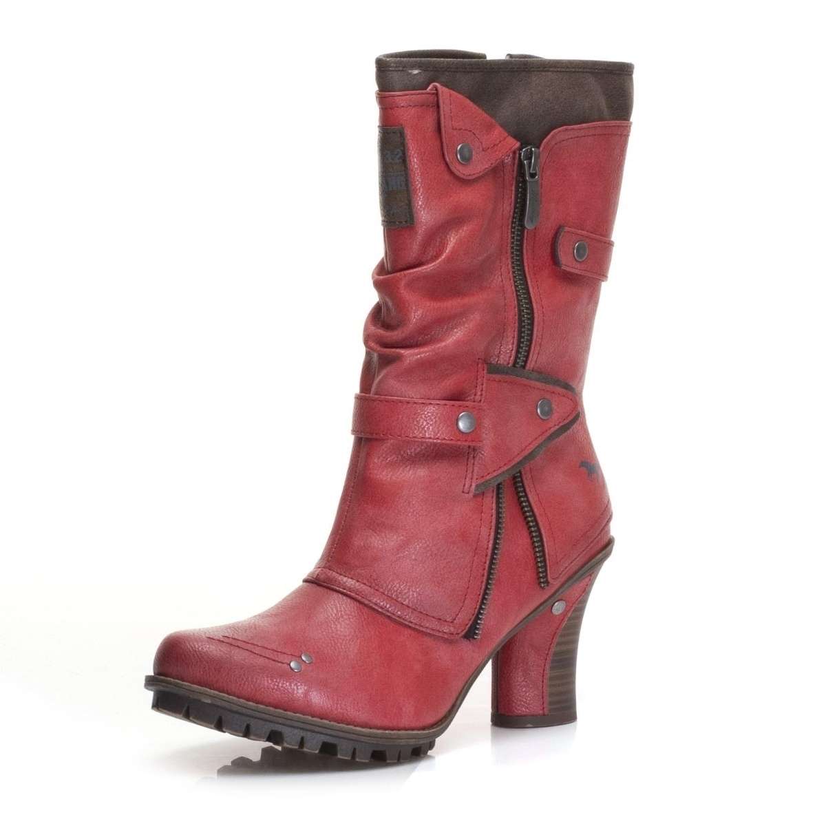 Dámská kozačky s neobyčejným zdobením, značky Mustang.