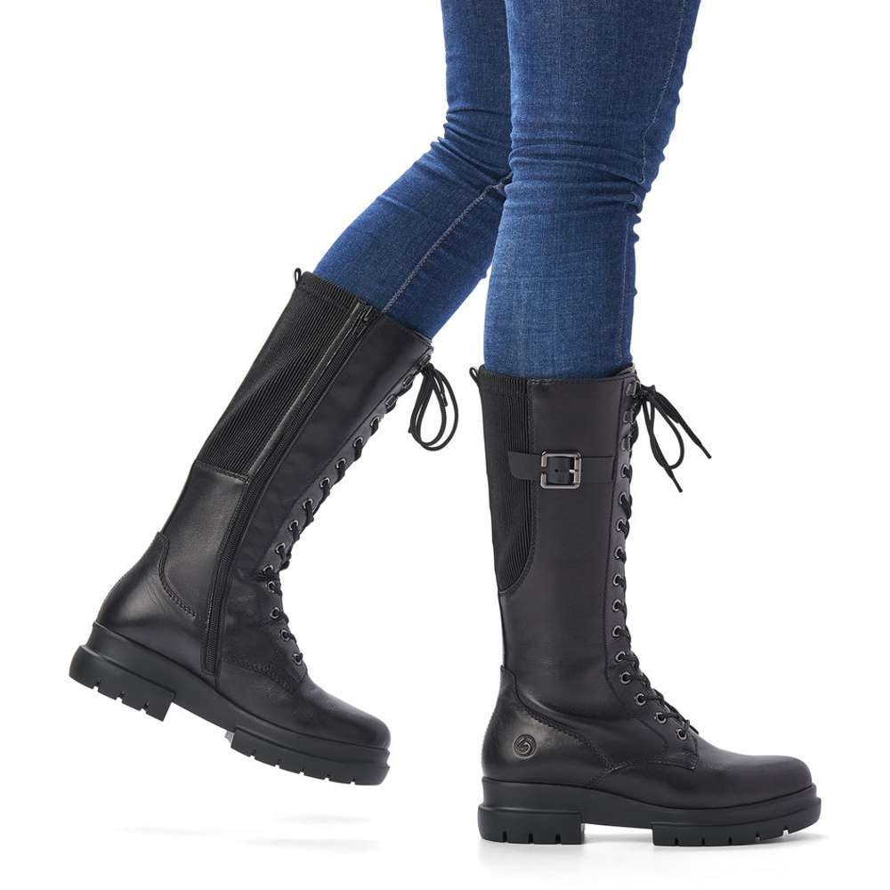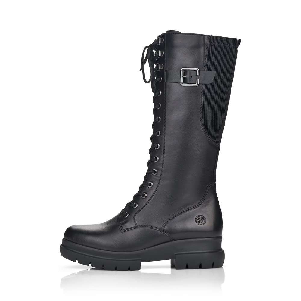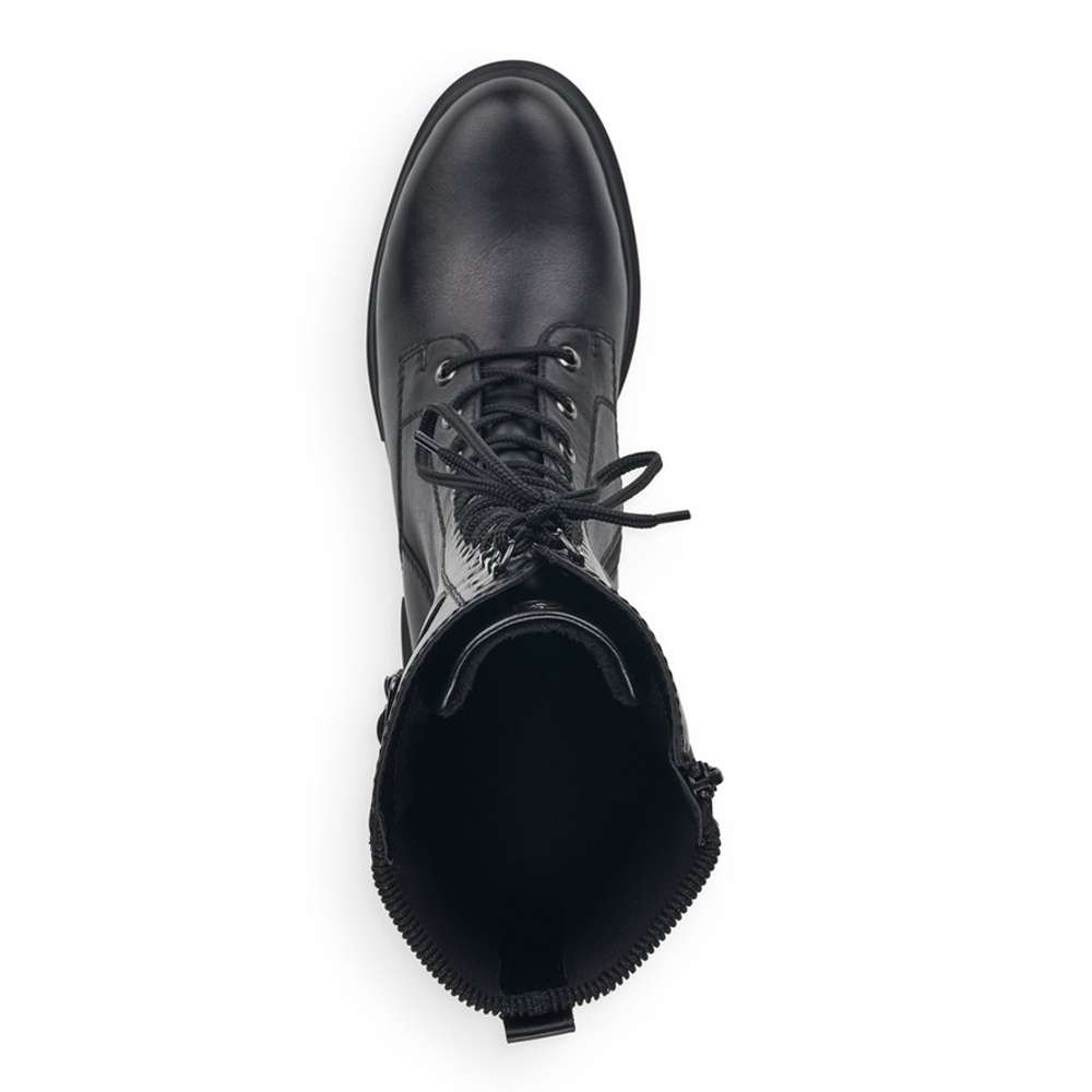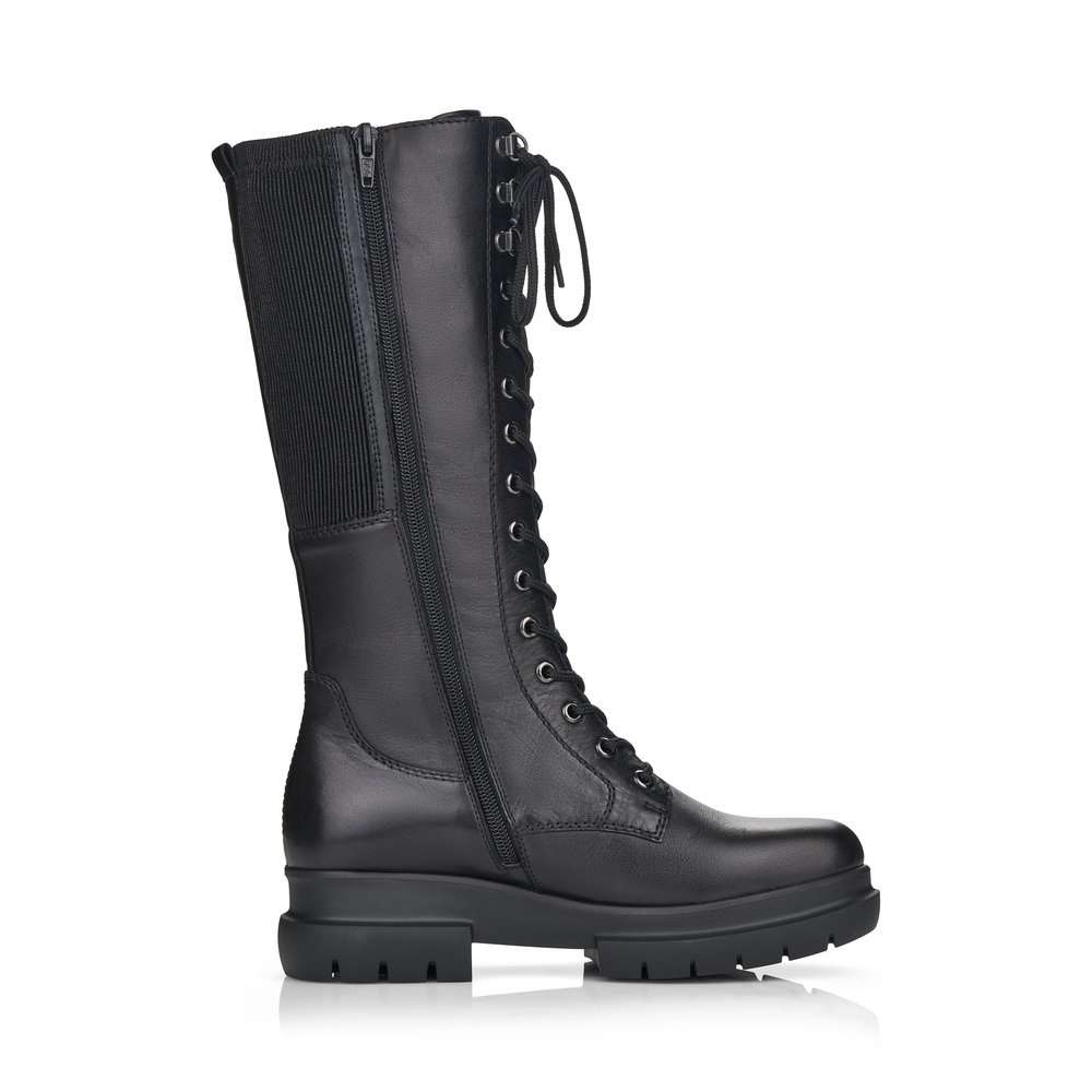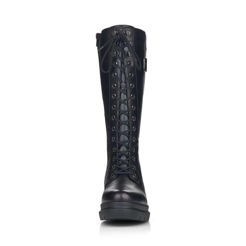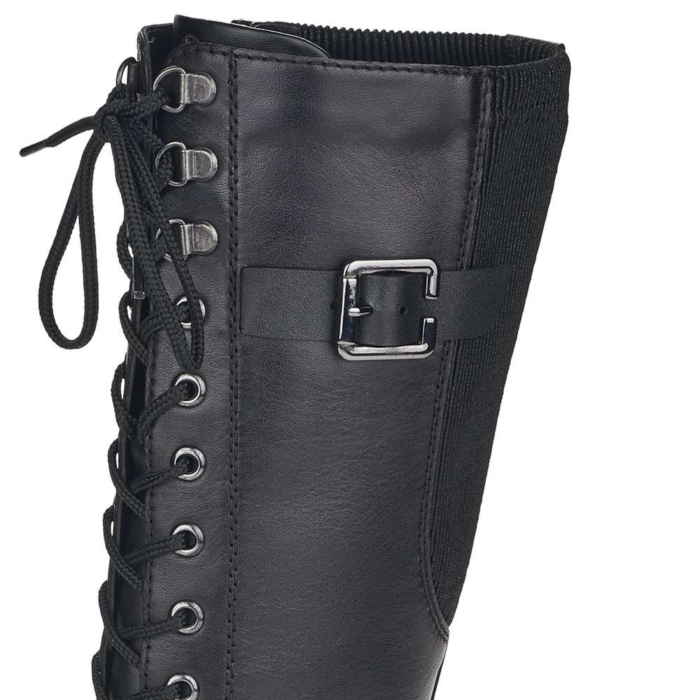 Kožený svršek krásně lemuje dlouhé šněrování, které doplňuje zip na vnitřní straně boty, takže lehce vklouznete dovnitř do obuvi. Na zadní části nohy se Vám přizpůsobí pohodlný strečový materiál, který spolu s kovovou přezkou lehce přitáhnete. Logo na vnější straně paty je zárukou jistoty, protože se jedná o Rieker.