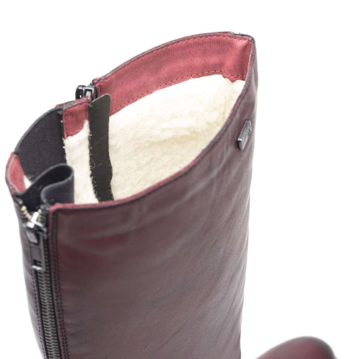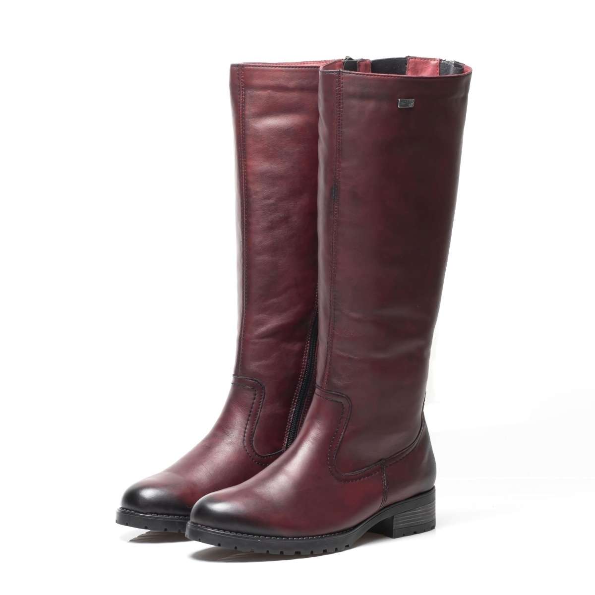 Dámská kozačka z pravé kůže v tmavě červeném provedení se zateplením z pravé ovčí vlny, značky REMONTE (jedná se o vyšší řadu značky RIEKER).