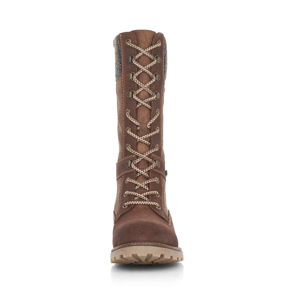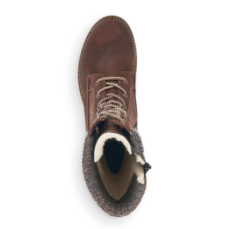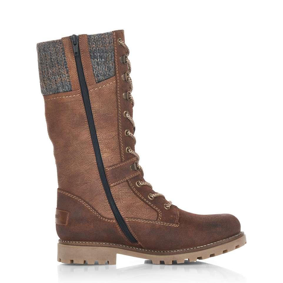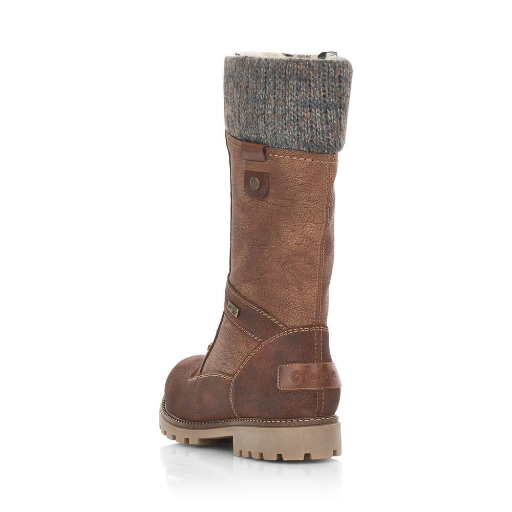 Dámské kožené polokozačky hnědé barvy pro zimní dny, značky REMONTE (jedná se o vyšší řadu značky RIEKER).