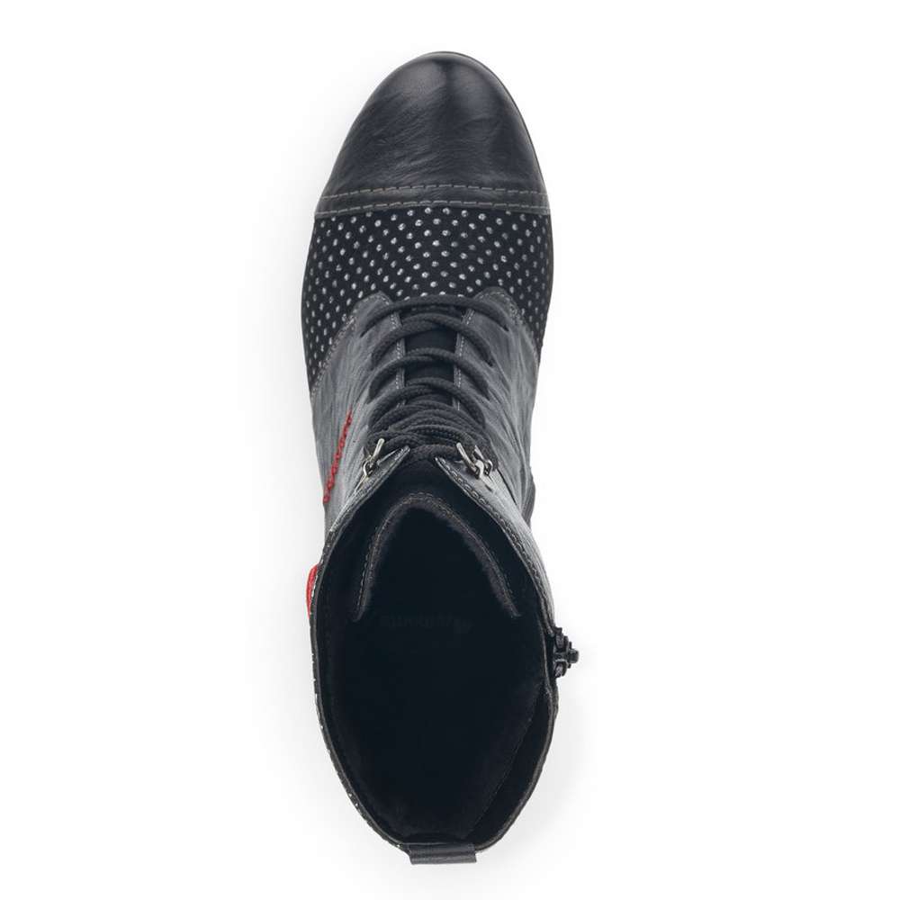 Dámská vyšší kotníková obuv,značky REMONTE (jedná se o vyšší řadu značky RIEKER),extravagantního vzhledu zaručeně skvěle doplní Vaše outfity.